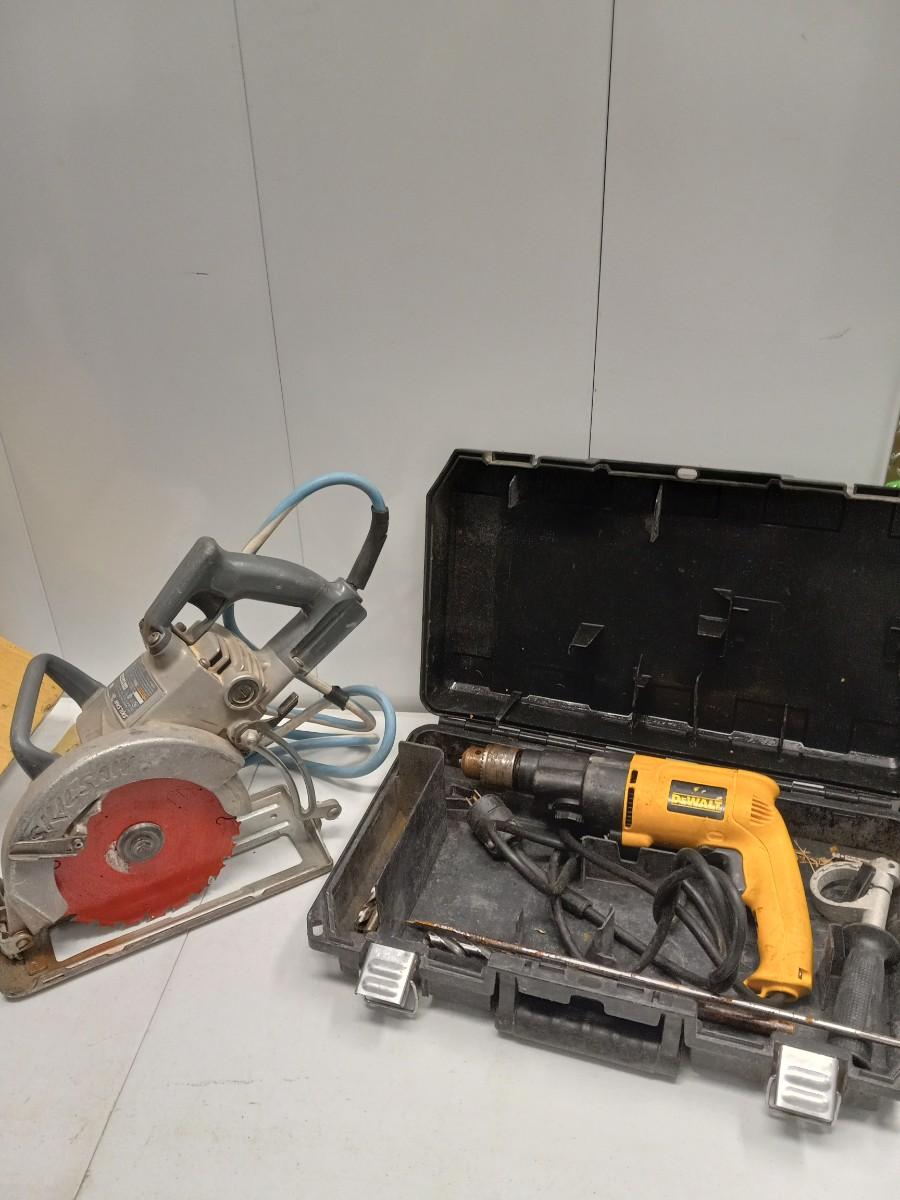 LOT 20 DEWALT 1/2" HAMMER DRILL AND SKILSAW WORM DRIVE SAW