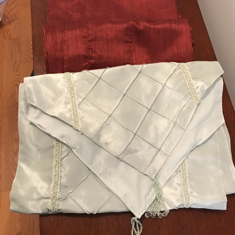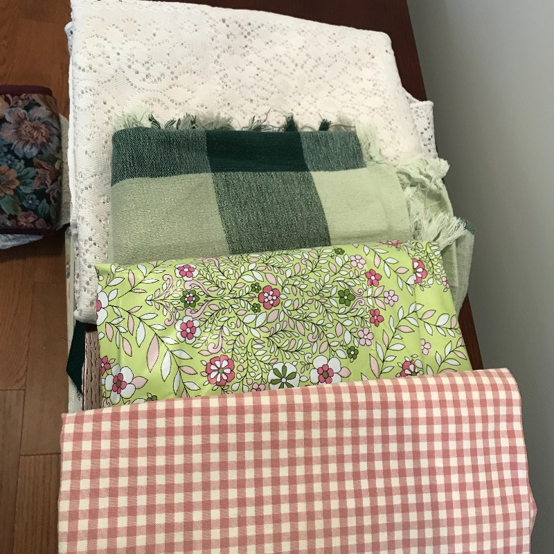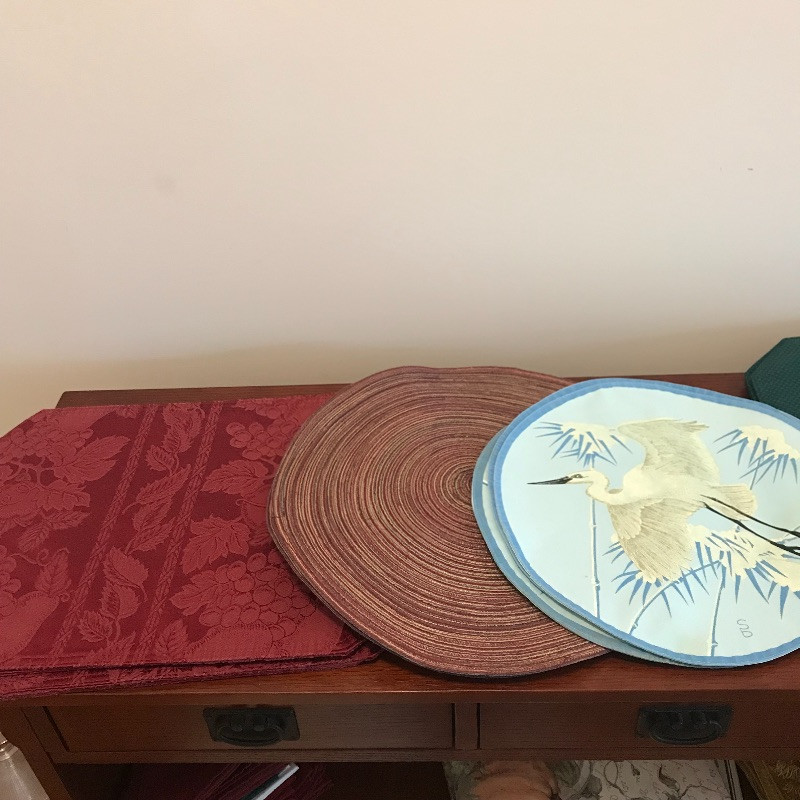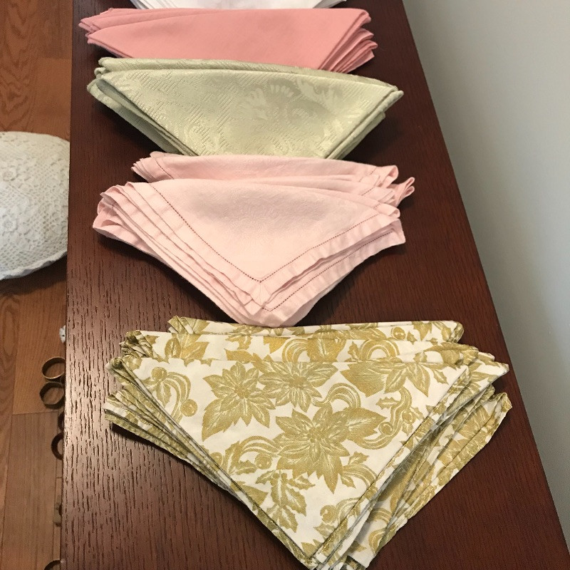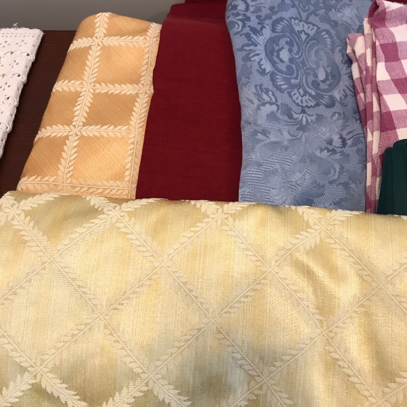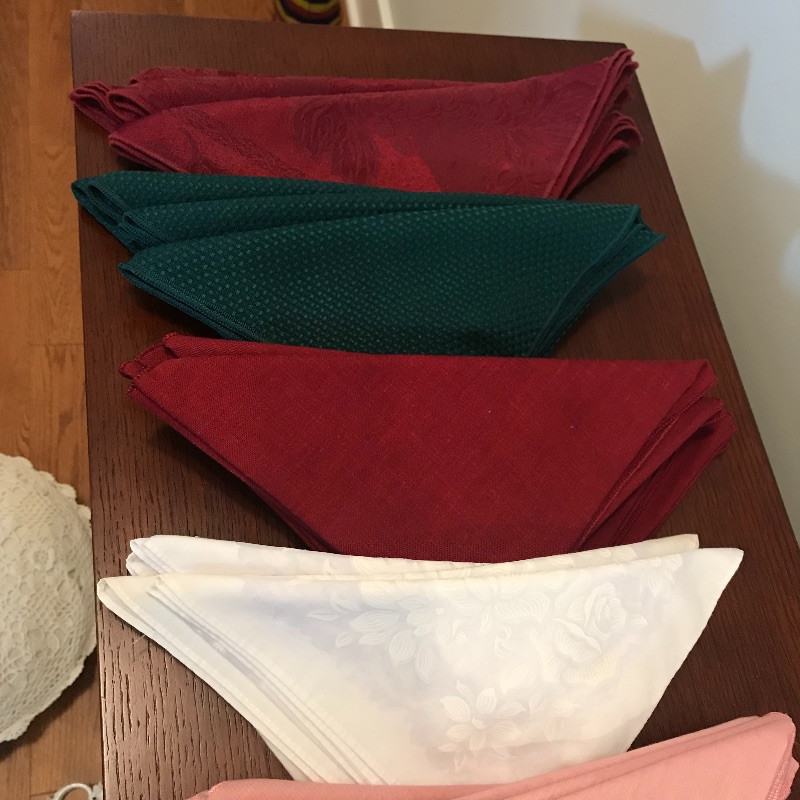 Lovely collection of various dining table decor. Lot contains napkin rings of various styles, crocheted placemats and table decor, pumpkin and French hard cork mats. Lot also includes table cloths for any occasion, including a 70” new in packaging white “dainty” table cloth. Table runners, other linens and a crocheted pillow also included. See photos. The hallway table is not included and can be found in Lot 22. Local Pickup Only.
