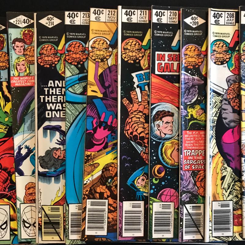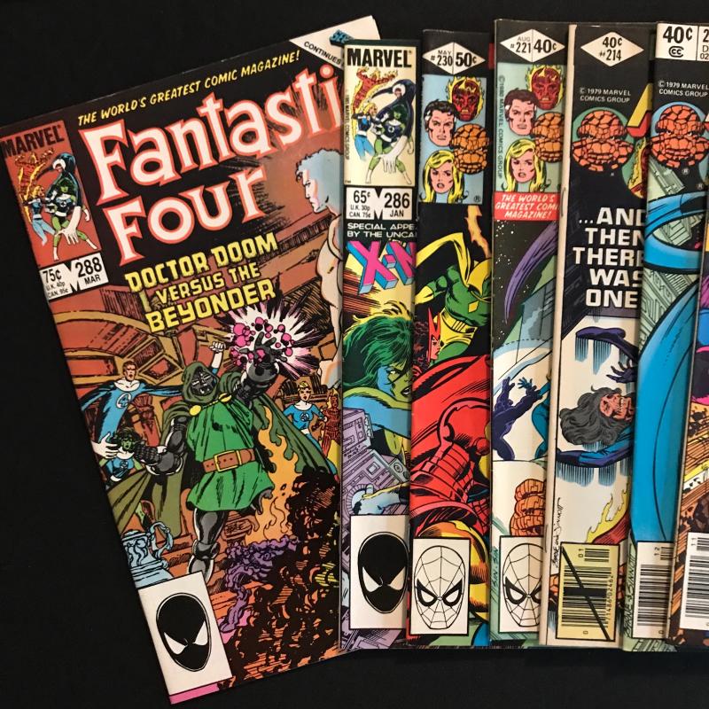 14 issues of "Fantastic Four" by Marvel Comics from year 1979 and later. All 8 issues of 8-issue series of "Fallen Angels" by Marvel, 5 Issues of "First Adventures" by First Comics, 8 issues of "Fish Police" by Comico. 35 total issues in this lot. Fits into one Priority box for shipping or local pick up in Asheville, NC.