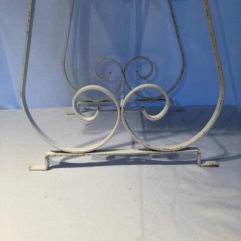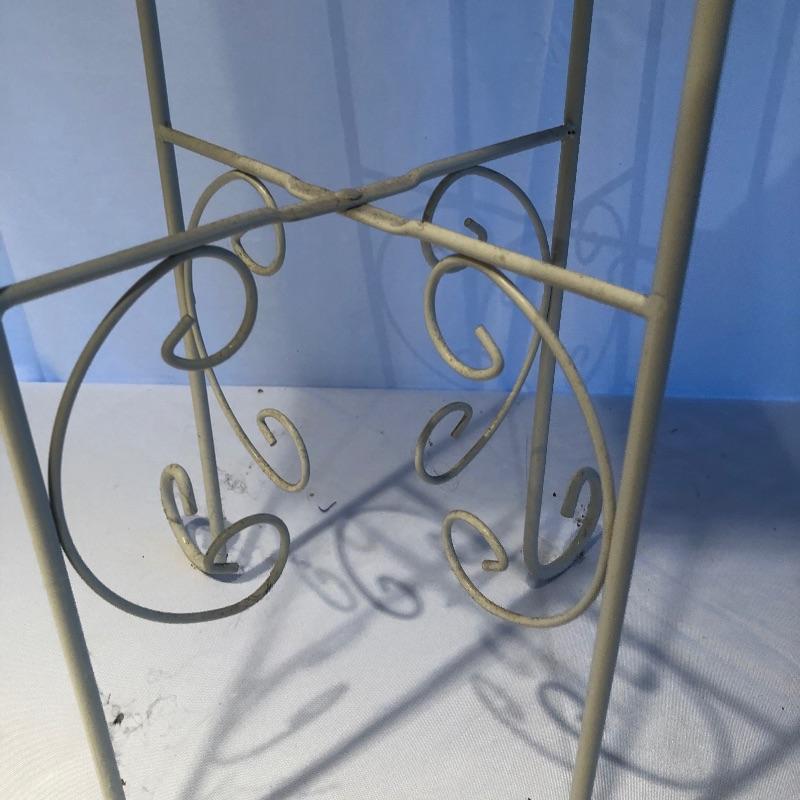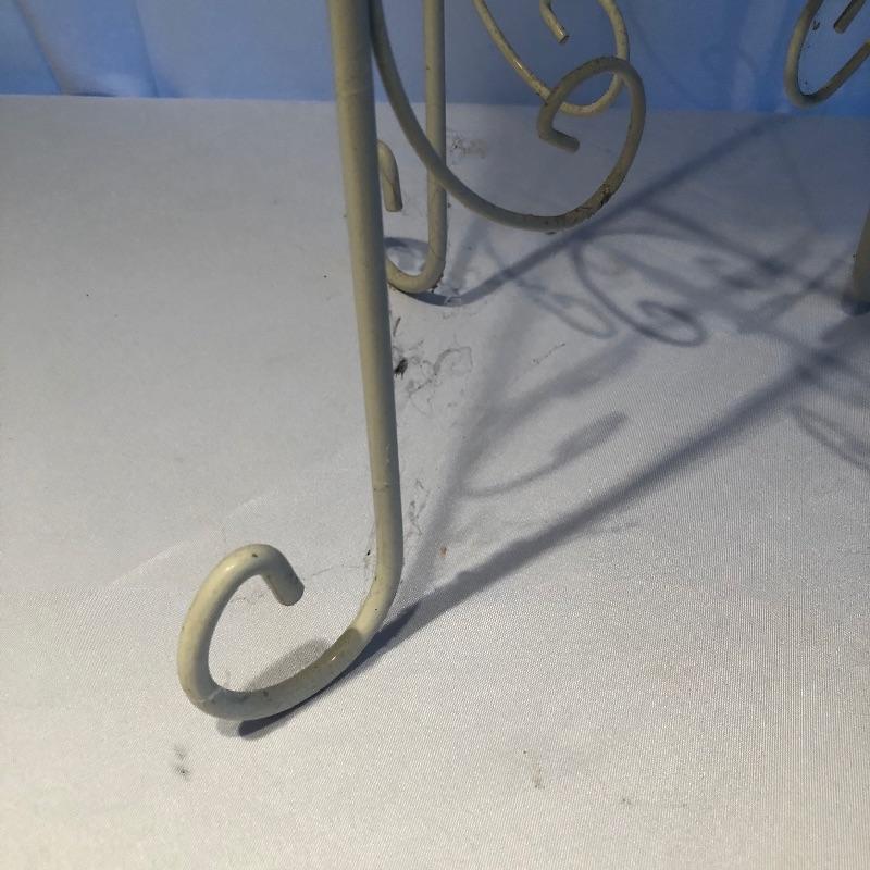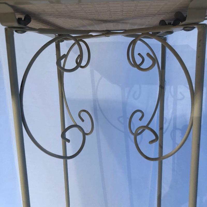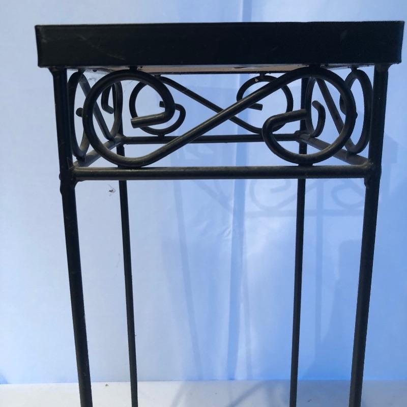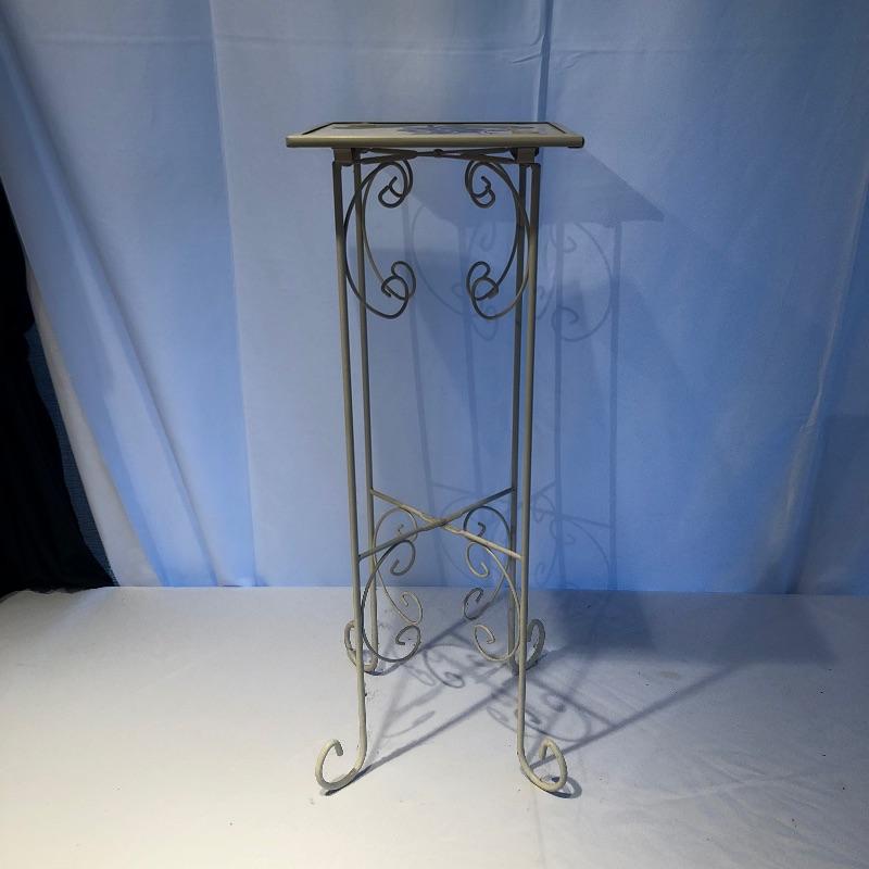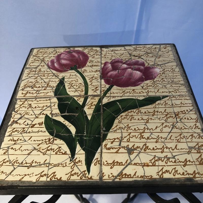 This lot contains four beautiful tile plant stands with flower/nature designs! The first (12.5” x 12.5” x 20”) is a wider white stand with two birds sitting on holly branches. This one is beautiful and would look great in any garden or sunroom. The second (8.25” x 8” x 19.75”) is a little bit smaller, with a beautiful pink and purple tinted rose design. The third (8.5” x 8.5” x 21.5”) is cracked on the top, but beautiful nonetheless, with two purple tulips and cursive design on the top. The fourth (10” x 10” x 27”) is the tallest, a white one with a cute design of grapes on the top. Local pickup only.