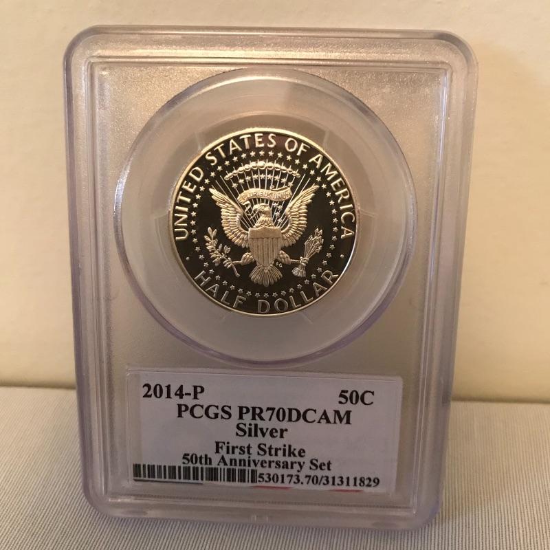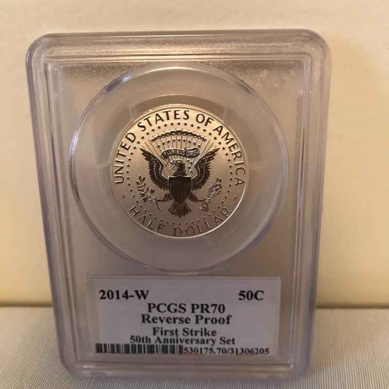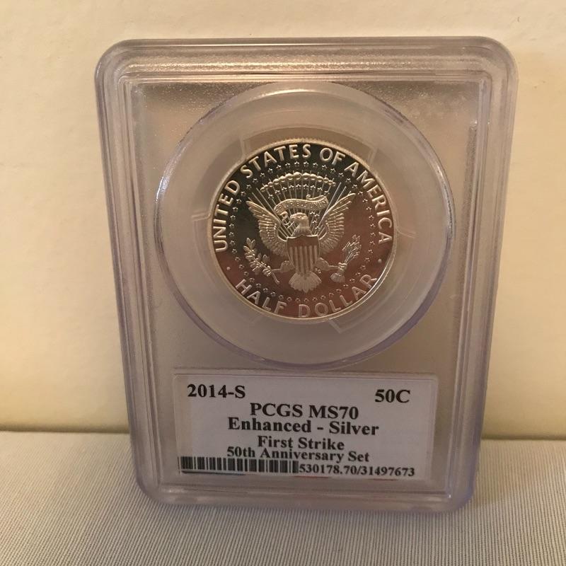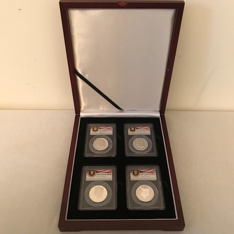 John F Kennedy 50th Anniversary Silver Set 1964-2014. Set includes one of each of the following: 2014-P, 2014-D, 2014-S Enhanced Silver, 2014-W Reverse Proof. See photos. Box measures 7.5” x 9” x 1.5”.
