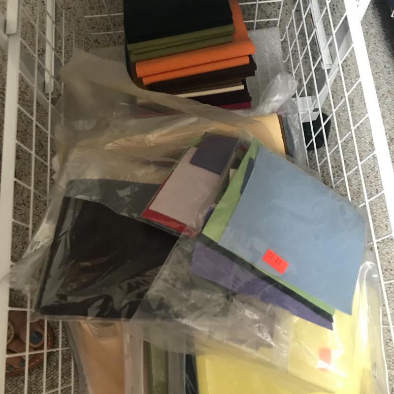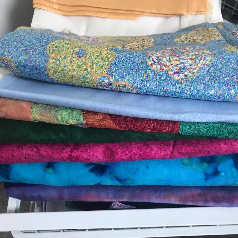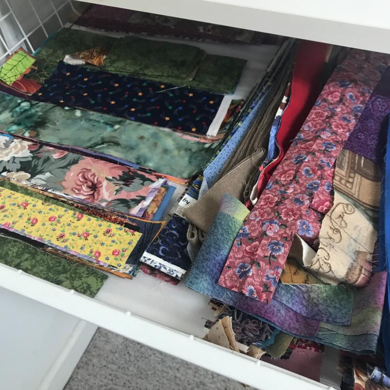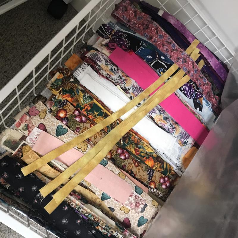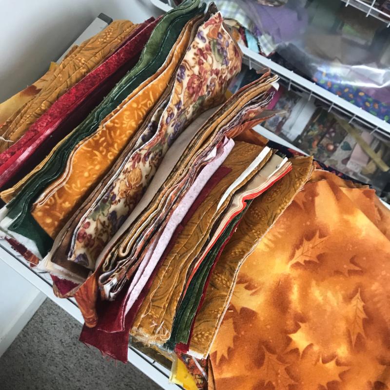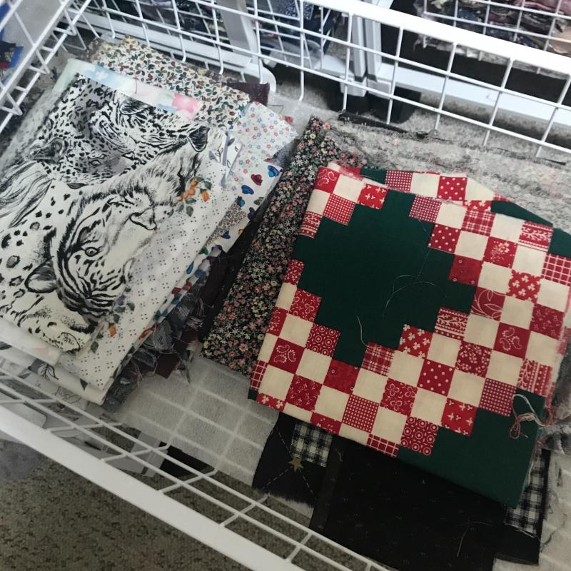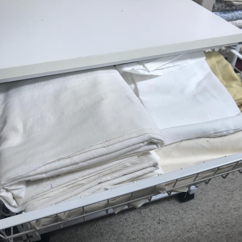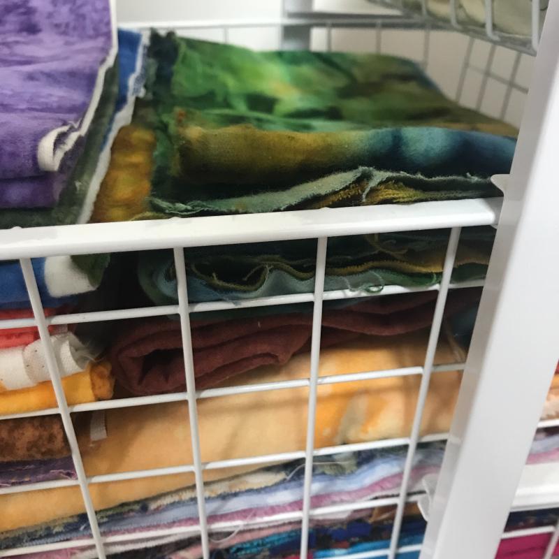 This lot includes four rolling storage carts. Each cart has layers of quilting fabrics. Some are yards, some fat quarters and some cut strips. See photos for details. No shipping. We encourage you to come to the preview to see fabric details in person. Tallest cart is 22.5” x 21” x 32”h., next tallest is 24”h. Two smallest carts are both 21” x 14” x 24”h. The two larger carts have removable tops that were not included in measurements.