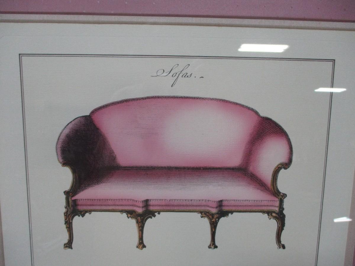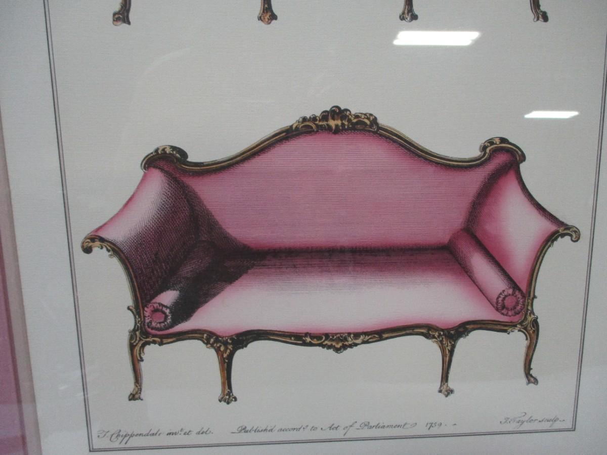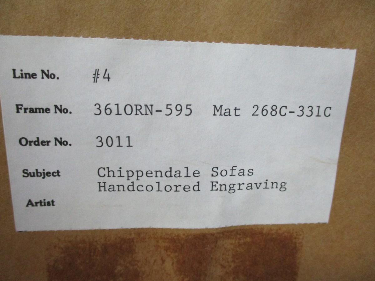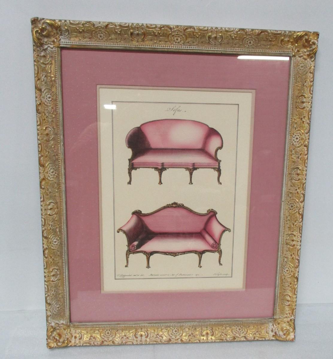 Lot 20 - Framed "Chippendale Sofas" Handcolored Engraving 28" x 23"