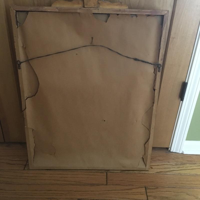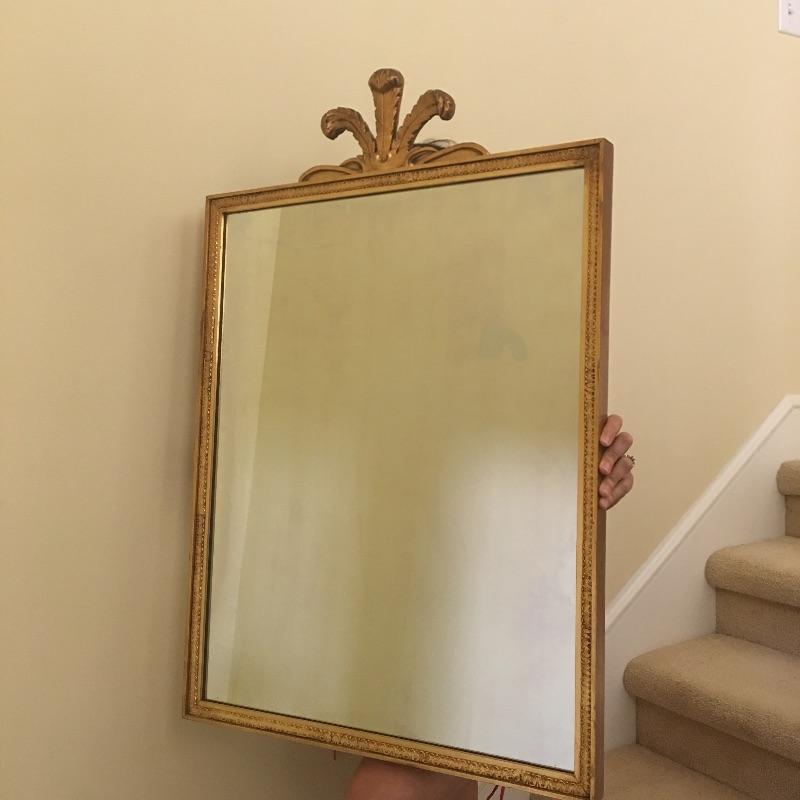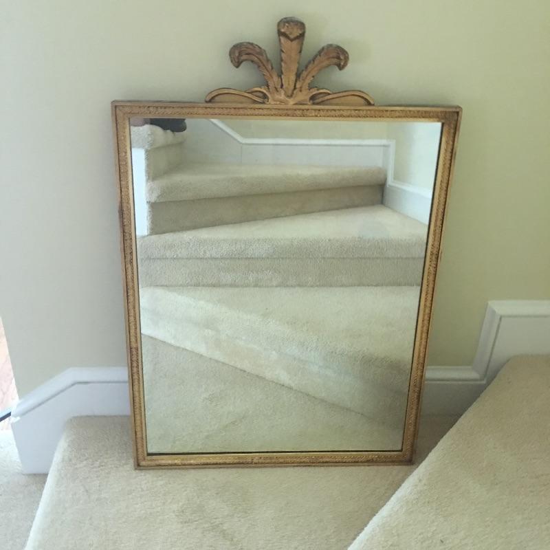Lovely mirror with gold painted wooden frame. You will look great in any room in your home. Mirror measures 23.5” x 30”.