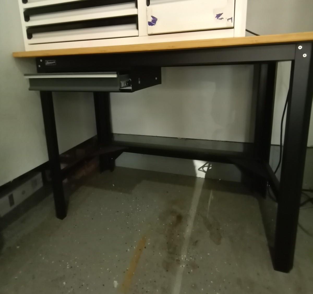 HOMACK SHOP TABLE MODEL GS00605204, MEASURES 52X26X36, METAL FRAME WOODEN TOP AND ONE DRAWER