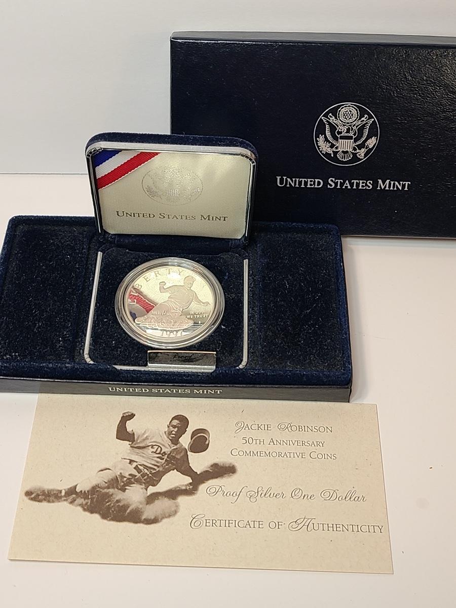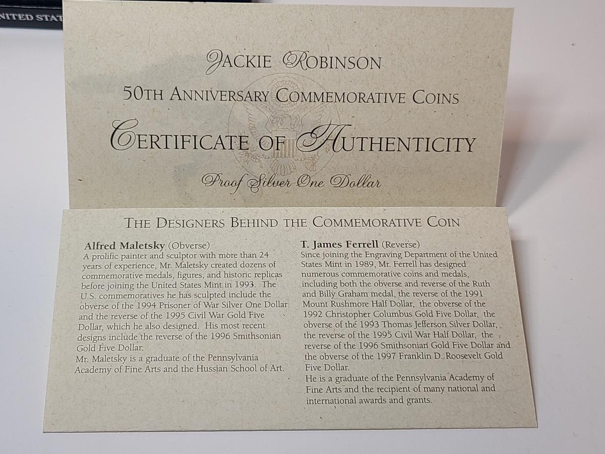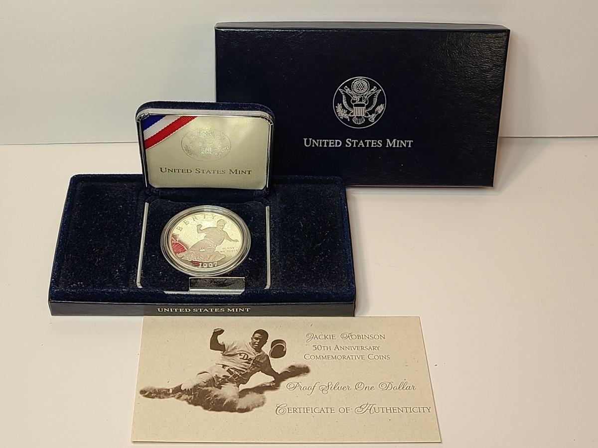 Lot 20: Jackie Robinson Commemorative Proof Silver One Dollar Coin