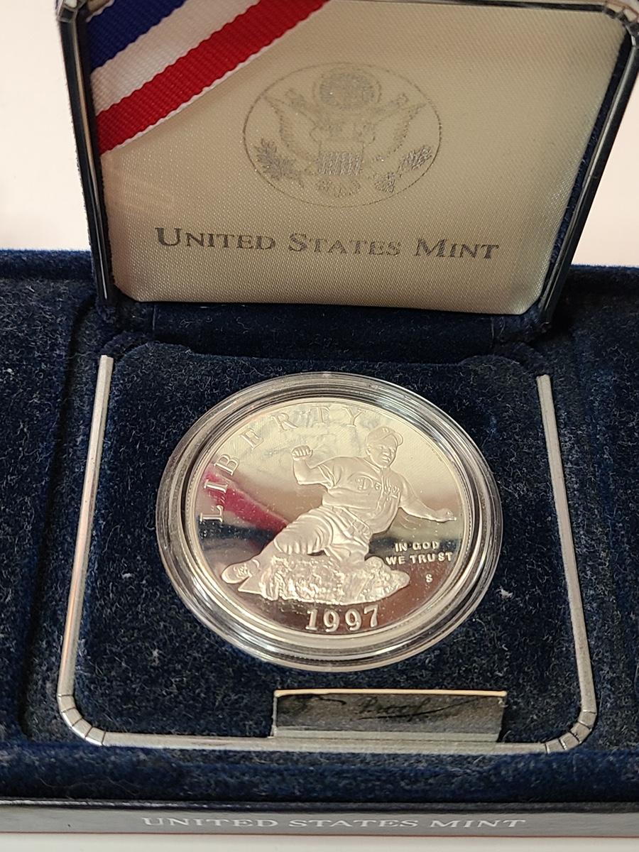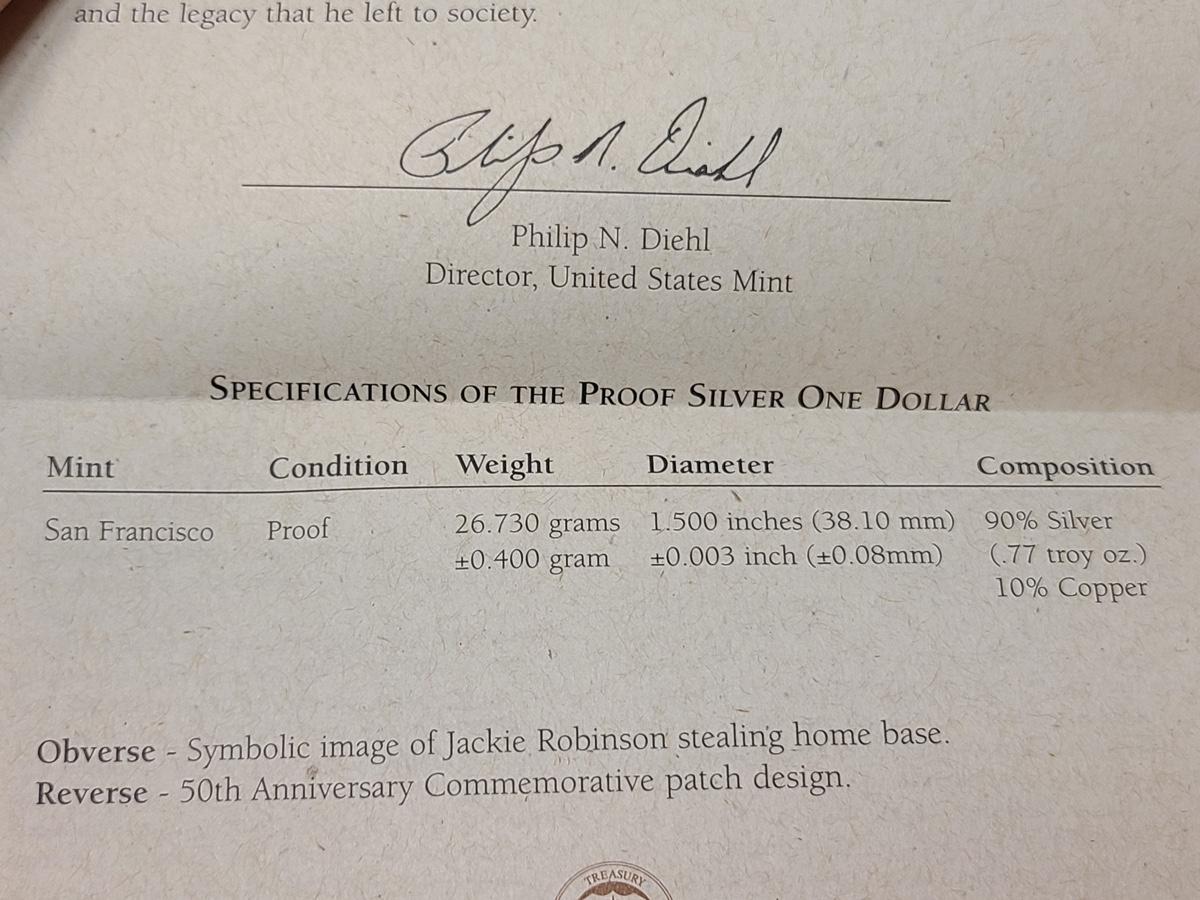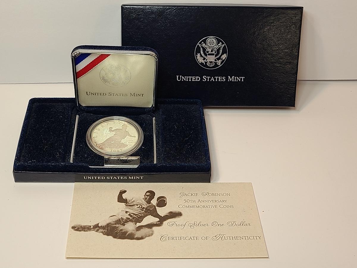 Lot 20: Jackie Robinson Commemorative Proof Silver One Dollar Coin