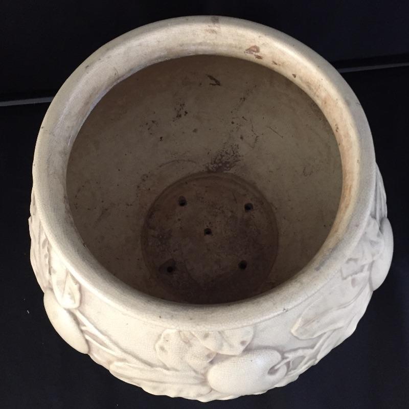 Large beautiful ceramic plant pot. Owner says they believe it came from the Battery Park Hotel when it was renovated. Pot measures 16” at widest point and has small cracks that look to be superficial - See Pictures. Put it on the pedestal stand from lot 60 to make it a set.