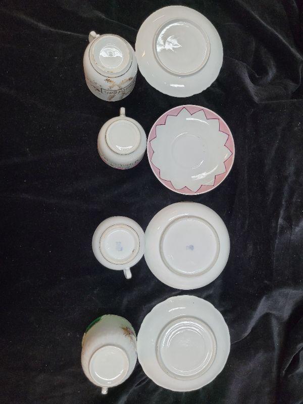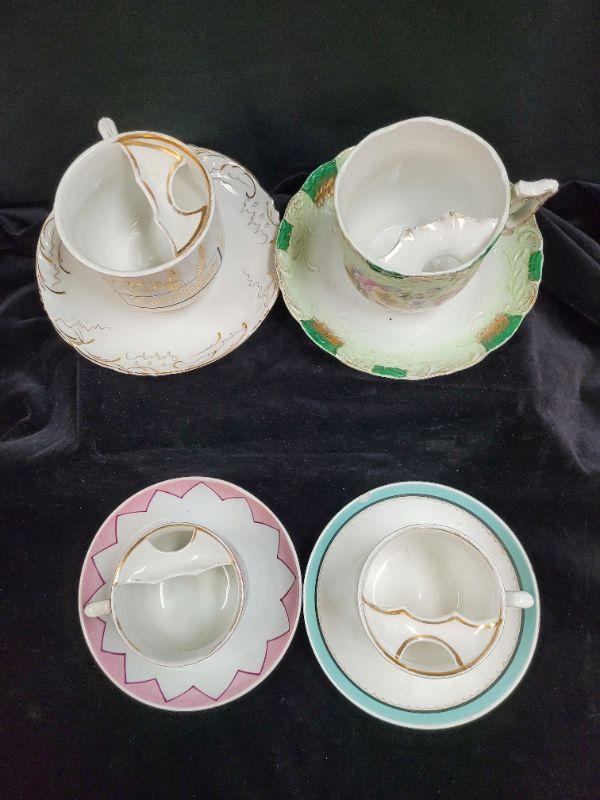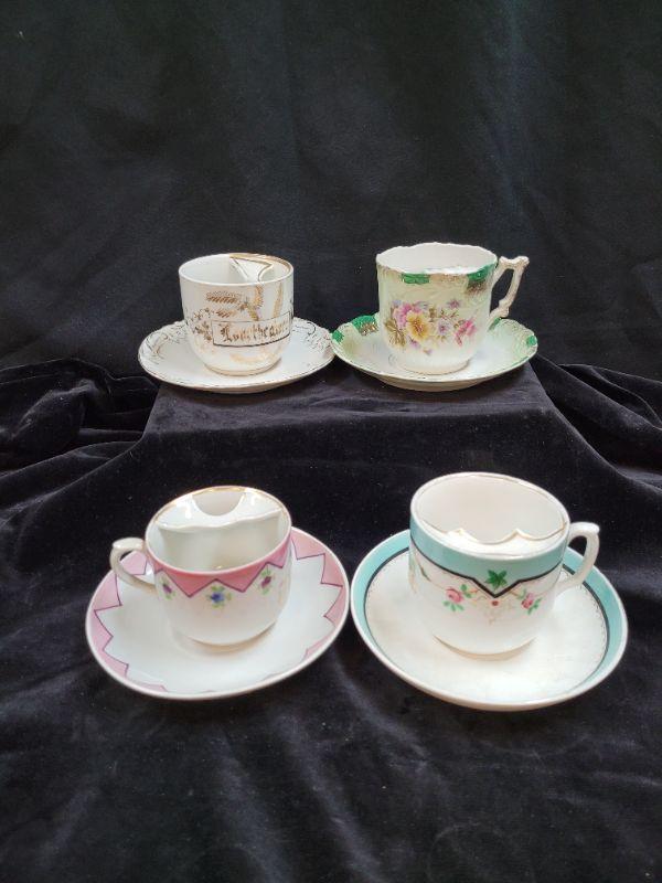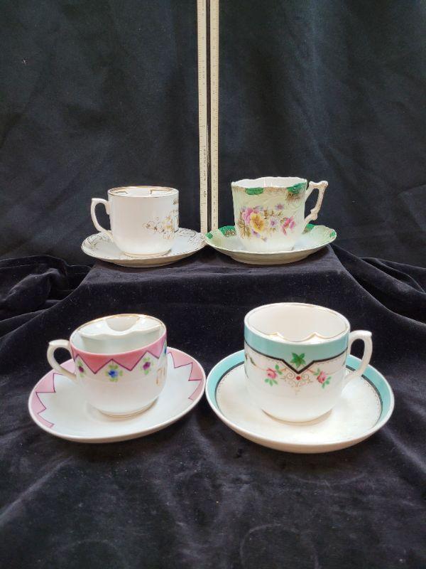Lot of 4 Fine China mustache tea cups. Un marked or unknown.