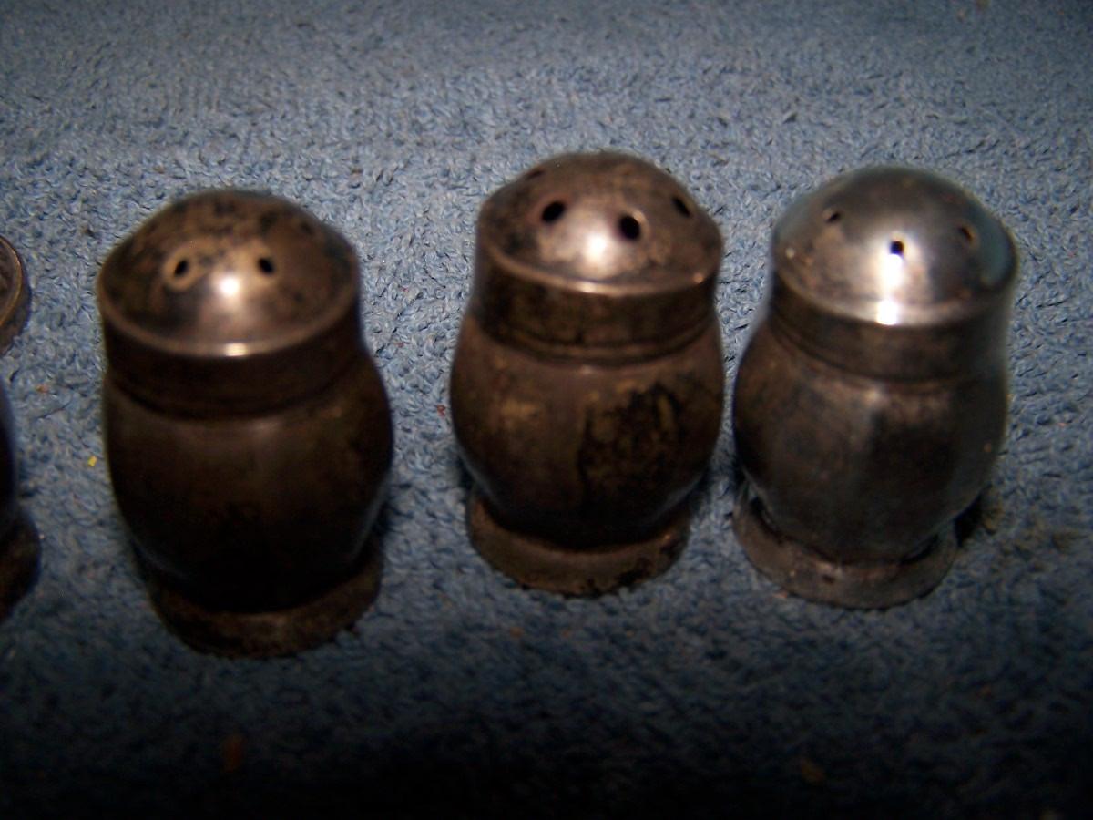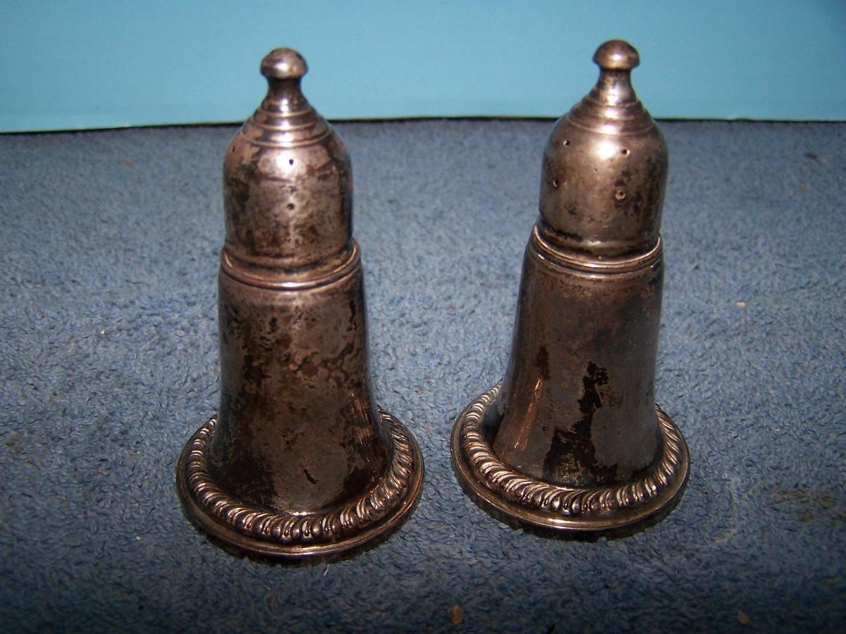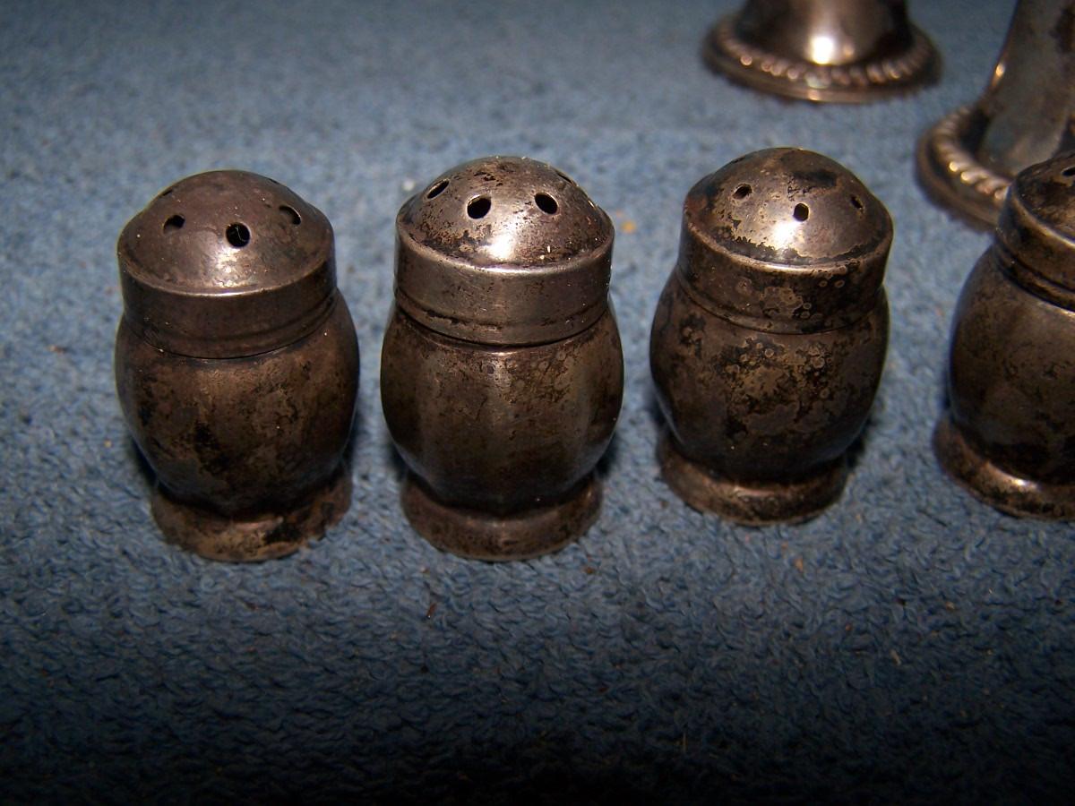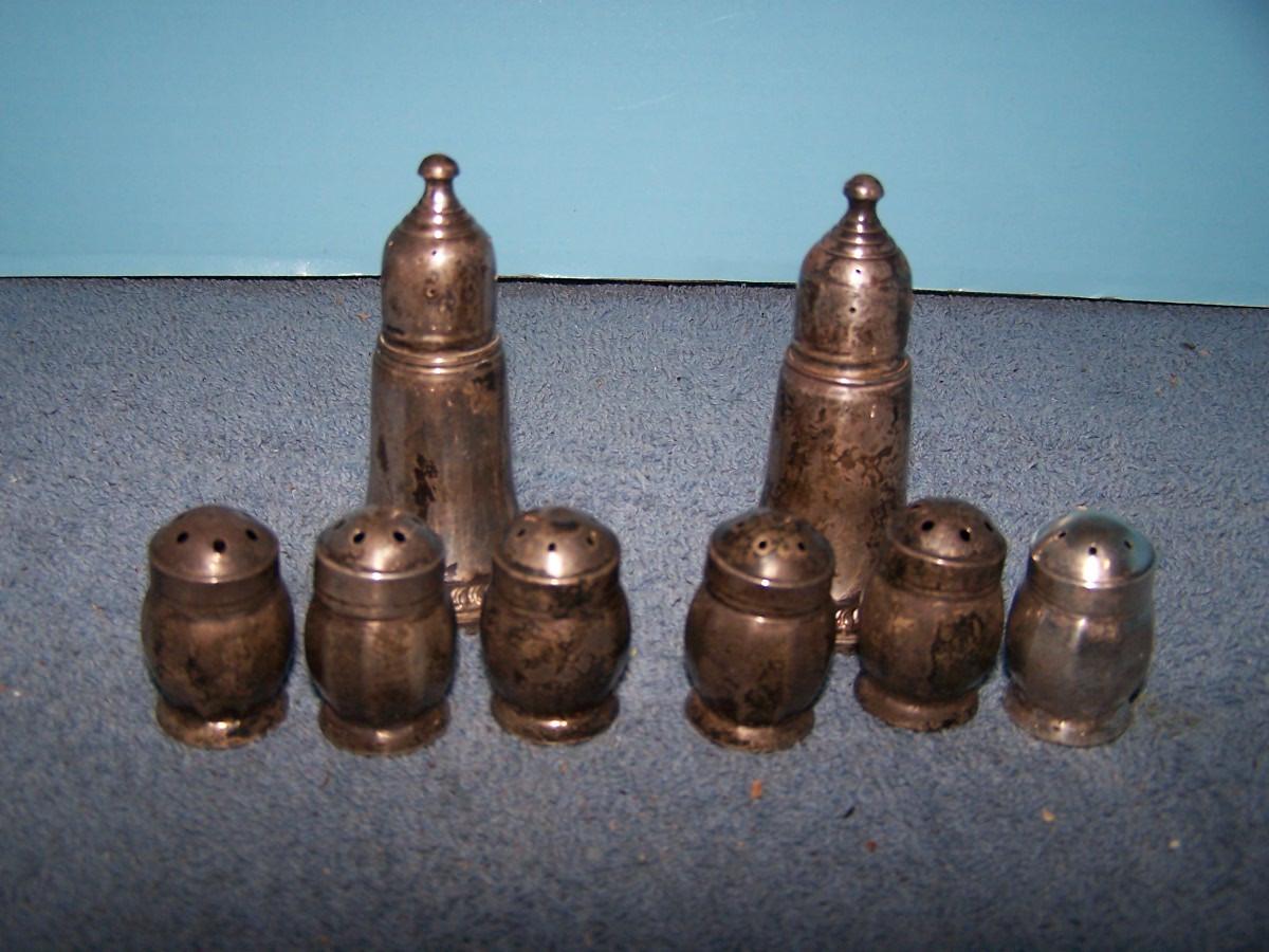 THESE ARE LOVELY VINTAGE STERLING SALT/PEPPER SHAKERS!!! ALL MARKED.. LARGE PAIR 3'' TALL, ARE WEIGHTED/GLASS INSERT.. 3 SMALL PAIR-1 1/2'' TALL, ARE ALL STERLING-30GR TW... LIGHT WEAR, NEED POLISHING..