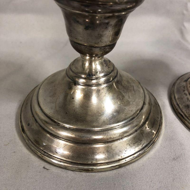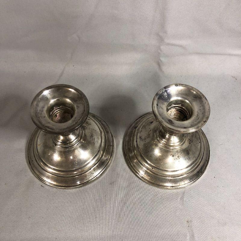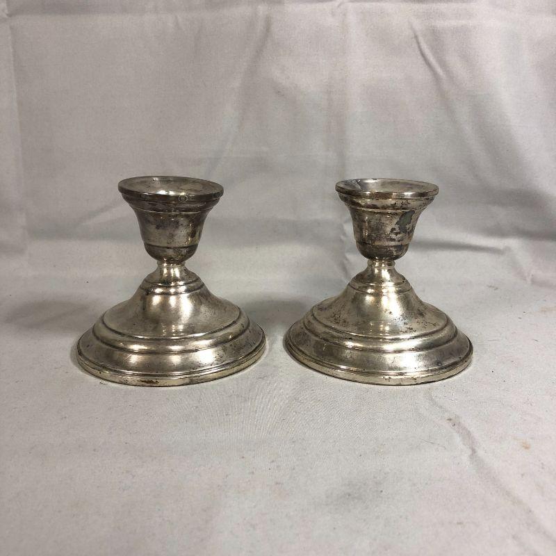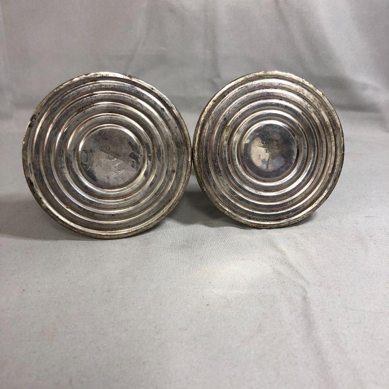 This is a pair of sterling silver weighted candlestick holders from Preisner and are stamped with a "19". They are in excellent condition and stand about 3.5" tall.