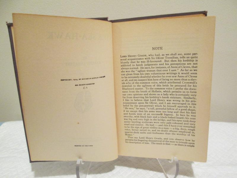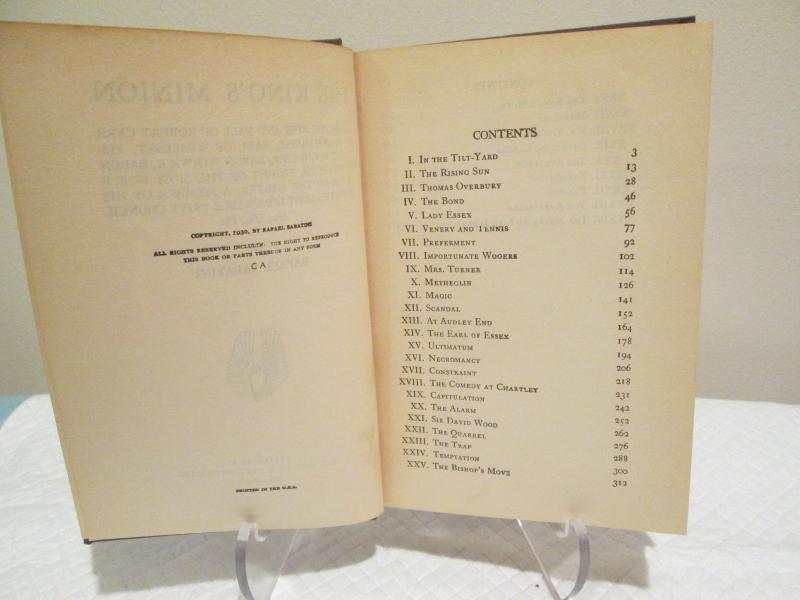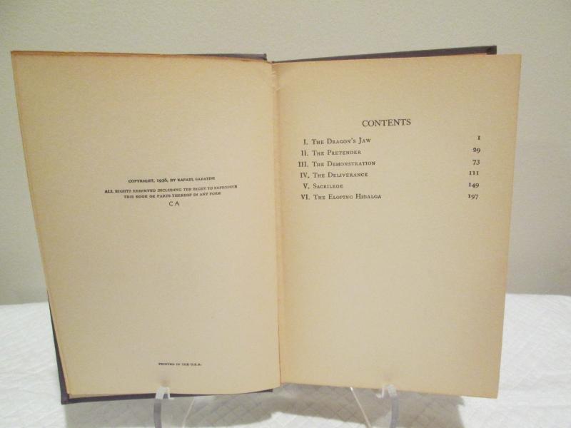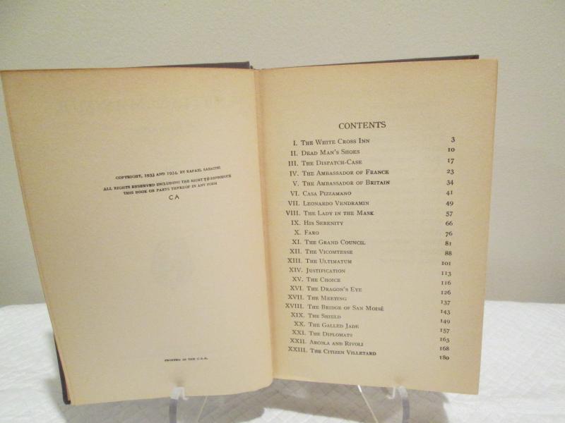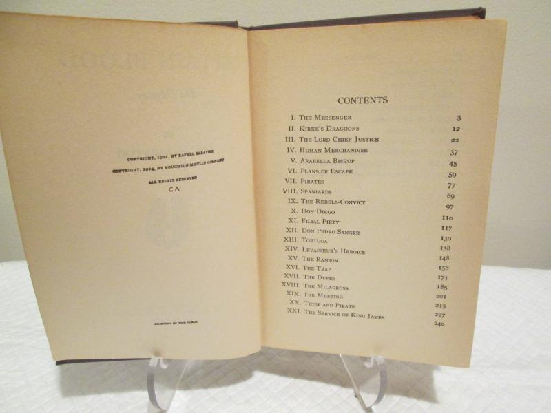 Scaramouche Original copyright 1921 Rafael Sabatini - a tale of the French Revolution, Venetian Masque original copyright 1933 and 1934 Rafael Sabatini - a Historical adventure set in the 1790's. The hero is a French aristocrat supposedly guillotined during the Fr. Revolution who becomes a spy, The Sea-Hawk original copyright 1924 Houghton Mifflin Company - a tale of an Elizabethan Englishman among the pirates of the Barbary Coast, Captain Blood copyright 1924 Houghton Mifflin Company - admiral of a fleet of pirate ships, The Fortunes Of Captain Blood original copyright 1936 Rafael Sabatini - a romantic saga, The King's Minion original copyright 1930 Rafael Sabatini