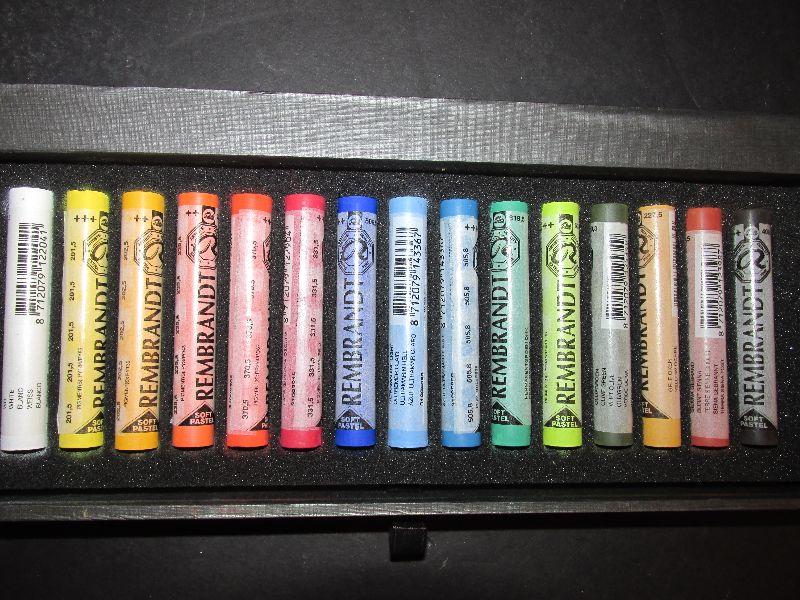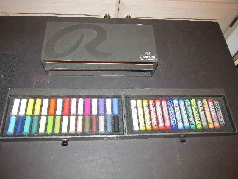 Rembrandt Pastel Box. Brand new unused. Box contains 30 hard pastels in one drawer and 15 soft pastels in another drawer.