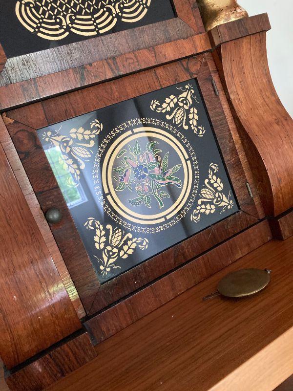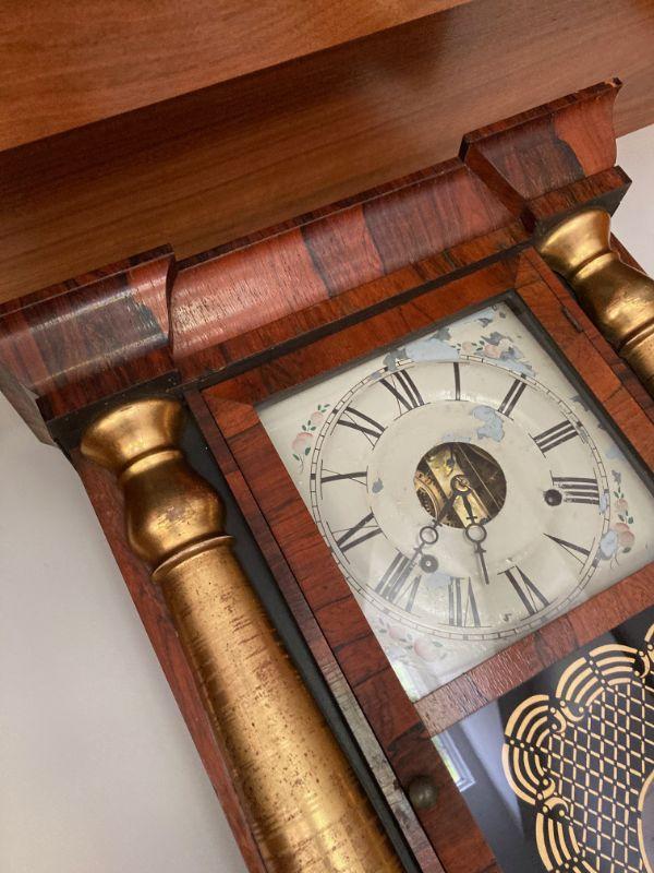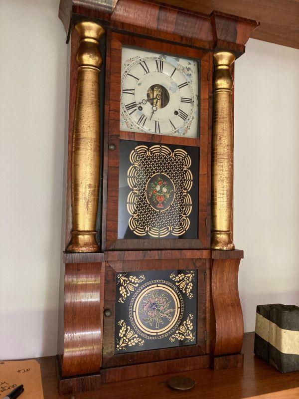 38" tall. Lyre movement. Orig. weights, hands, tablet, dial. Excellent label. Movement rebuilt 6-2020.
