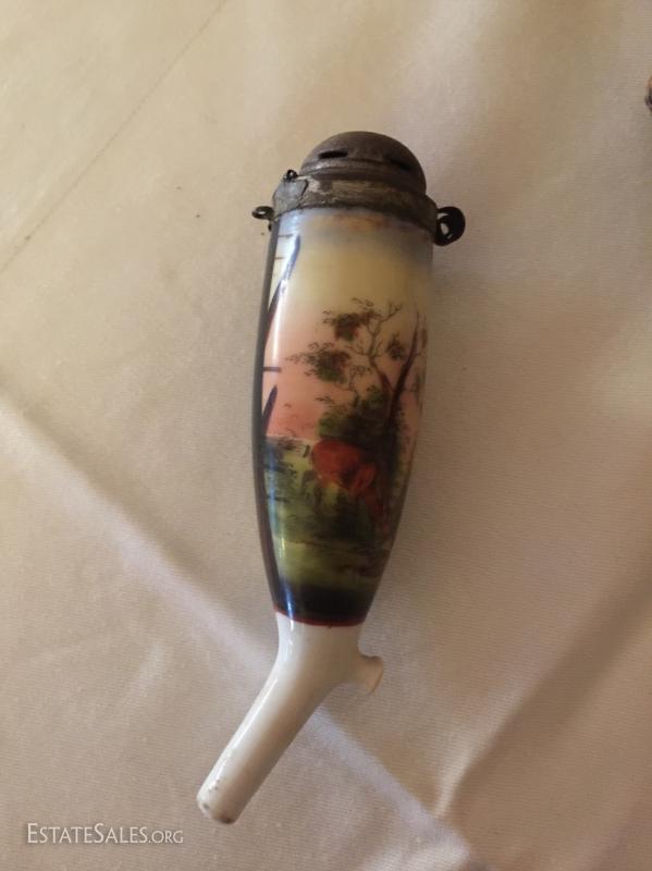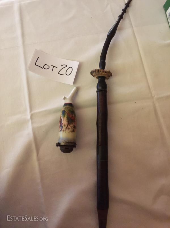 Long Stem Porcelain Smoking Pipe. Missing middle porcelain piece. See photos for details. Sold as is