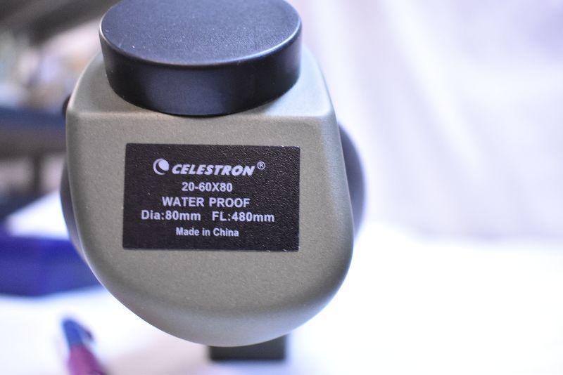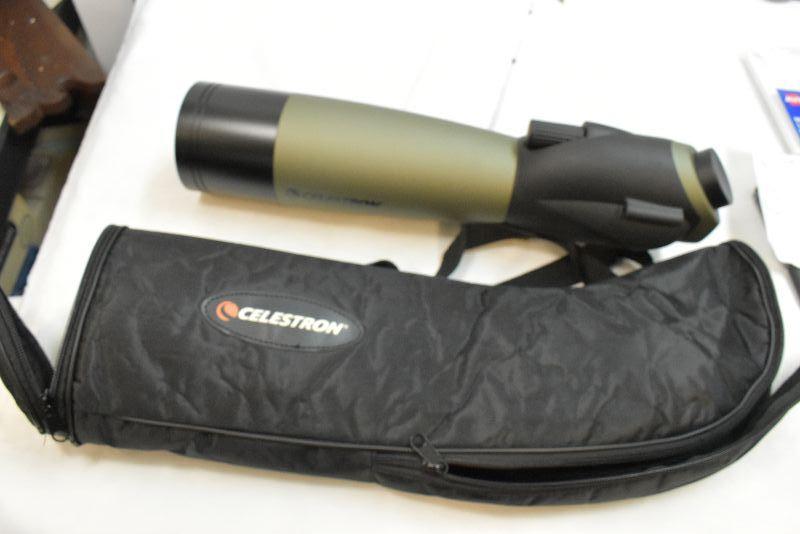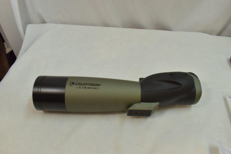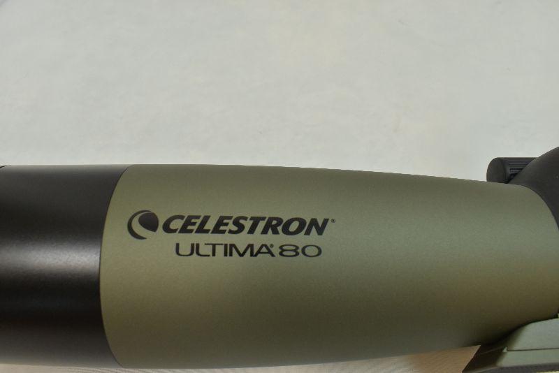 Celestron Ultima' 80 angled spotting scope in waterproof case and manual. The eyepiece is missing.