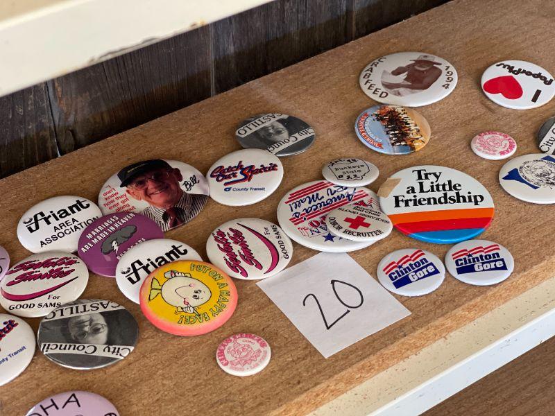 Lot 20 Vintage Buttons/Pins Political & More