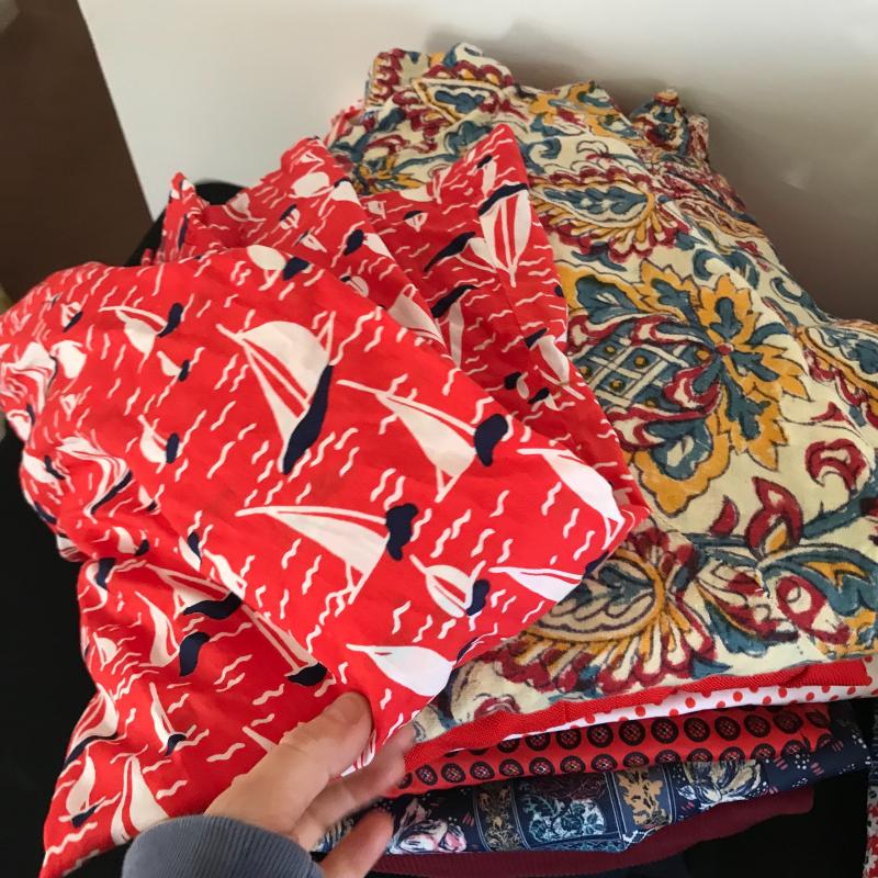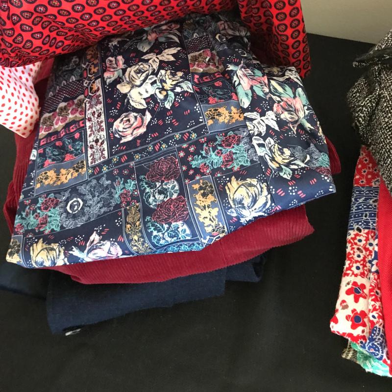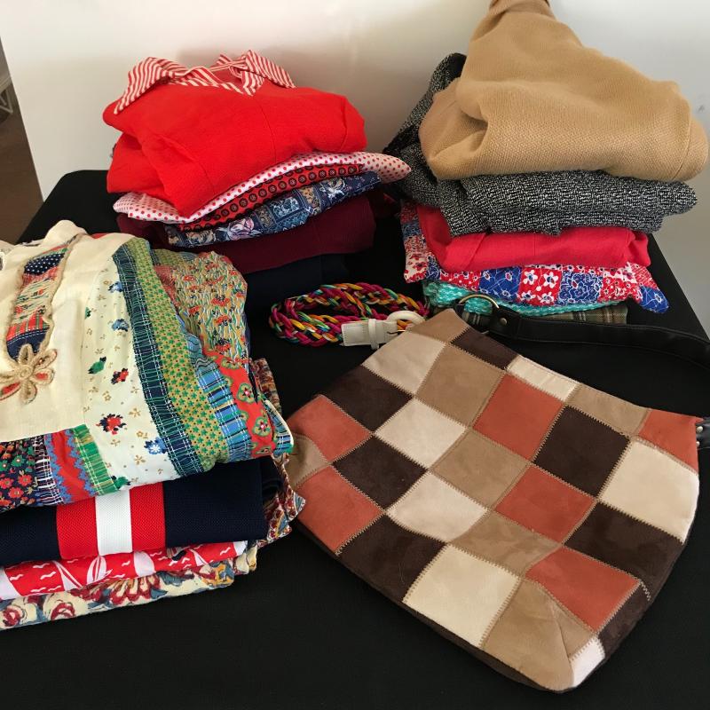 Lot includes a wide assortment of vintage clothing in varying sizes. Includes Pendleton skirt. Also includes one suede patch purse and a belt. See pics. Shipping available or local pickup in Asheville, NC.