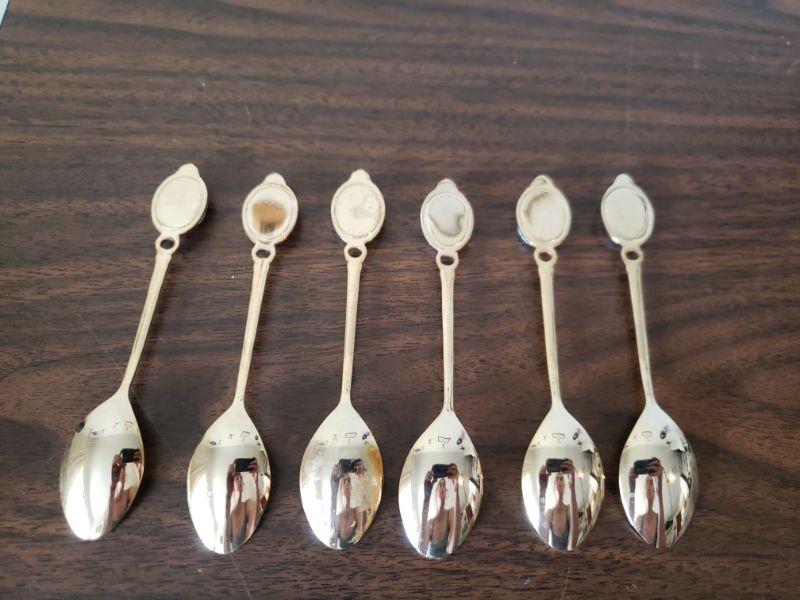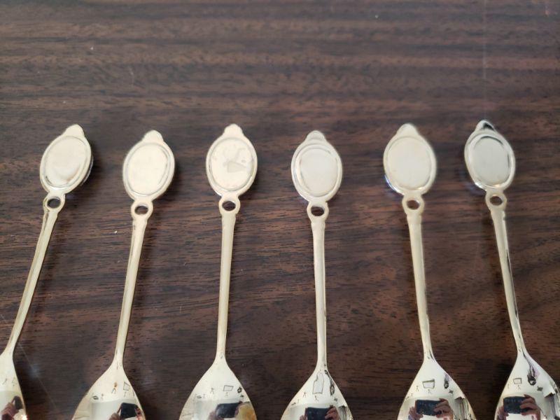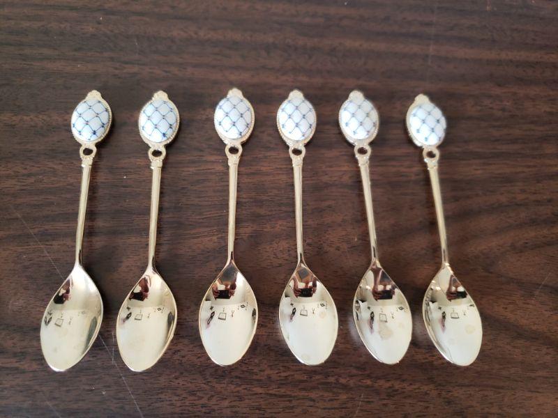 Vintage Demitasse Golden Spoons with White & Blue Porcelain Handle Design