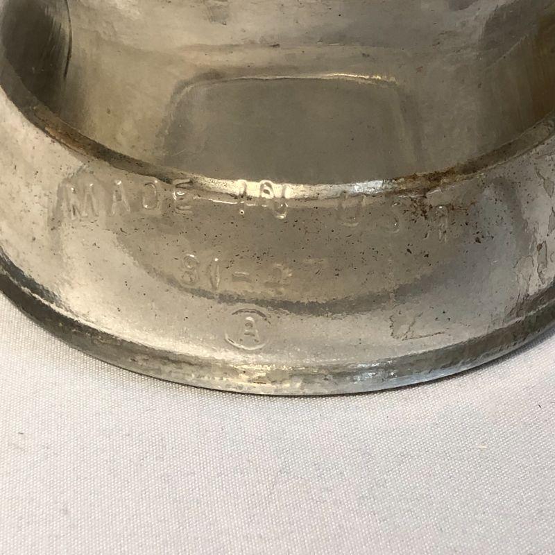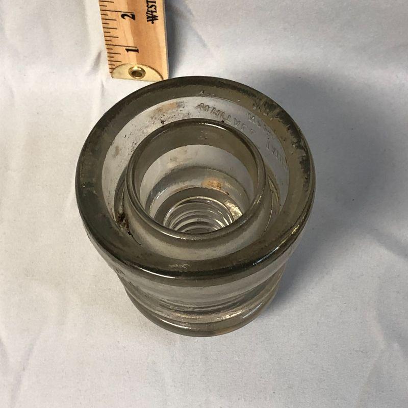 This insulator is in good condition with no chips or cracks found. It is embossed on the front "Whitall Tatum No. 1" and on the backside "Made in USA 81-47" and a capital A in a circle. I believe that this was made between 1922-1938 based on when Whitall Tatum made insulators (they were bought out in 1938 by Armstrong Cork Co).