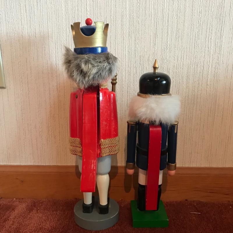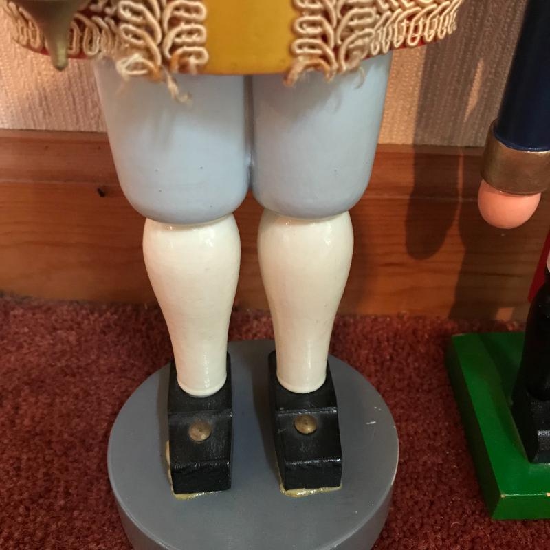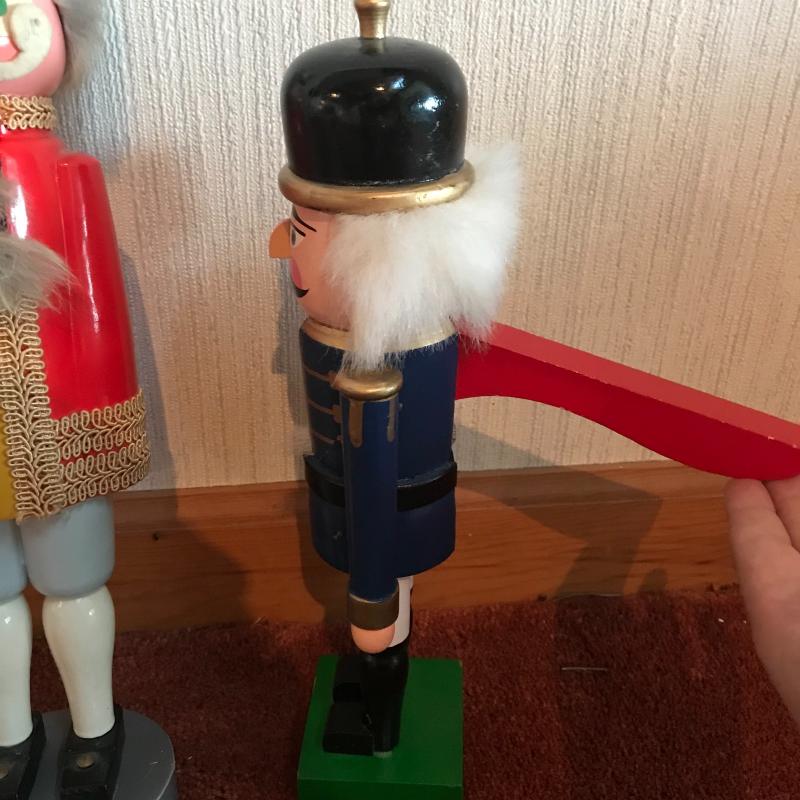 Does your social media have a daily countdown to Christmas too? Get ready with these two nutcrackers. The largest of the two measures 16.5” tall and has more intricate features like a felt mustache and eyebrows and metal buttons. Both in working order. The larger also has a stamp stating German manufacturing. Shipping available.