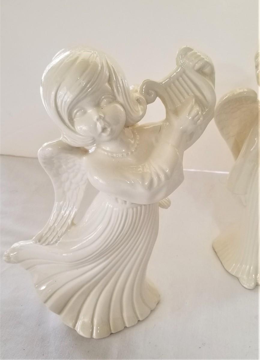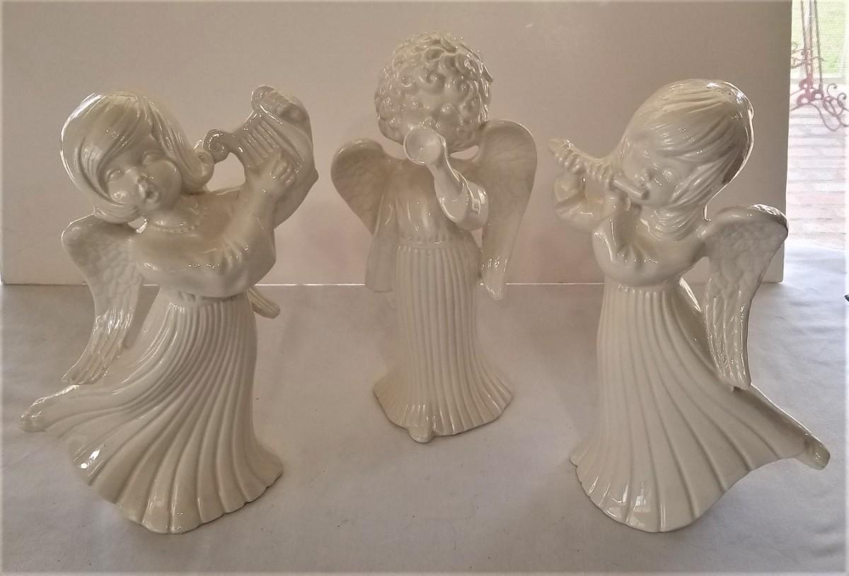 1970's ceramic - 3 piece Angel Band. Each is white, stands about 12" tall. Lyre, Horn, and Flute. All in good condition. "Tis the season!