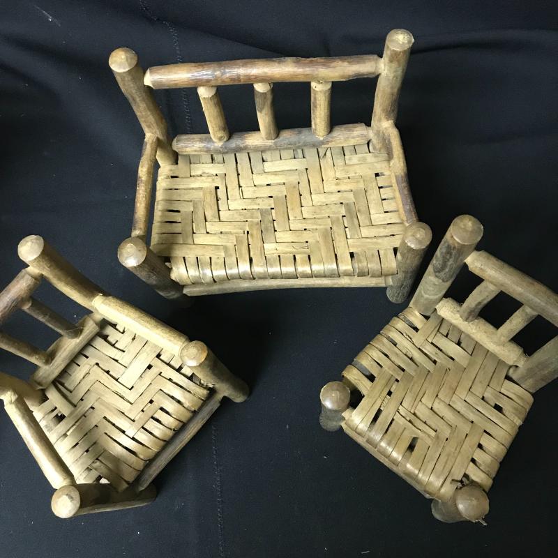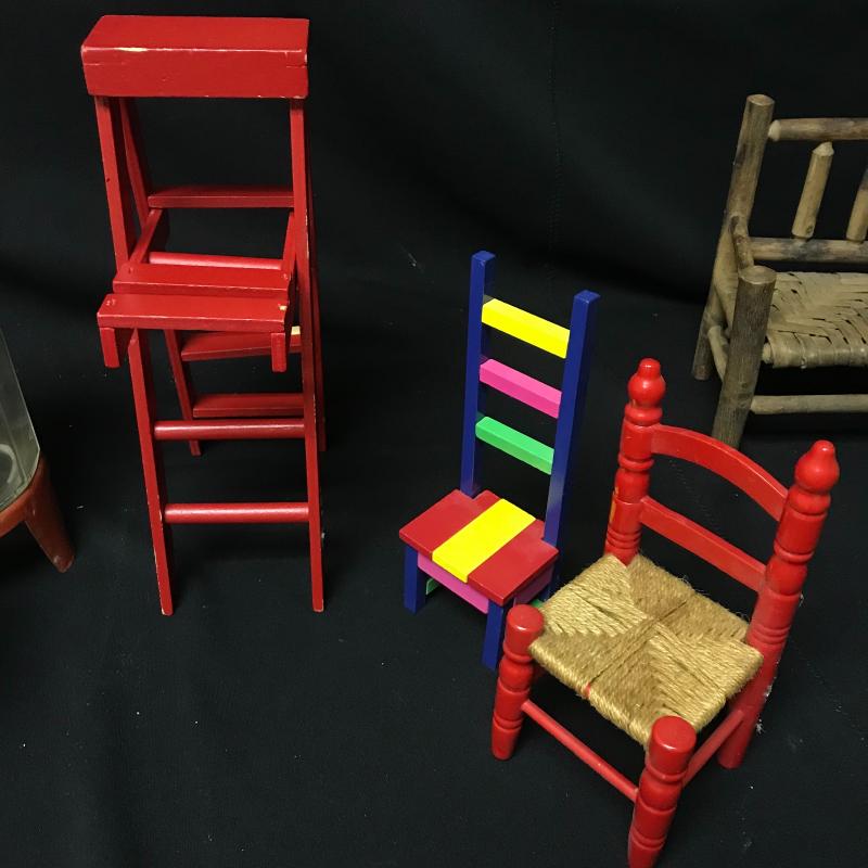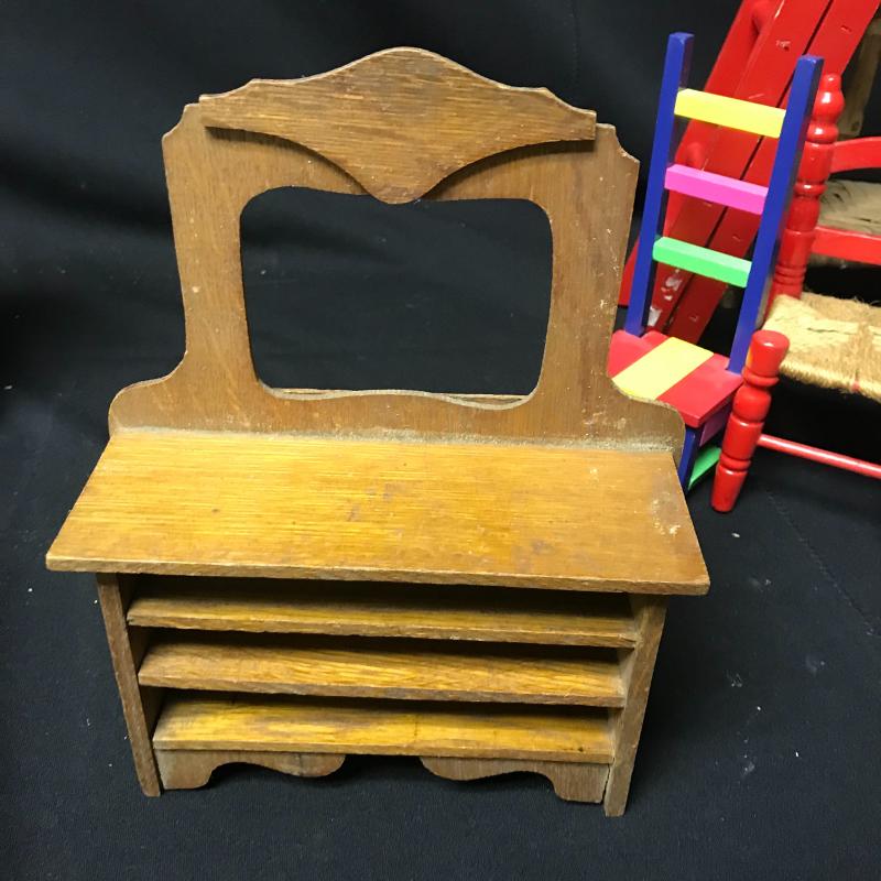 Three piece wicker doll furniture, doll ladder, two colorful doll chairs and the metal Wolverine wash set. Also in the lot is a doll dresser that is missing drawers and mirror. Sweet fun for that little one who loves their dolls. Shipping available.