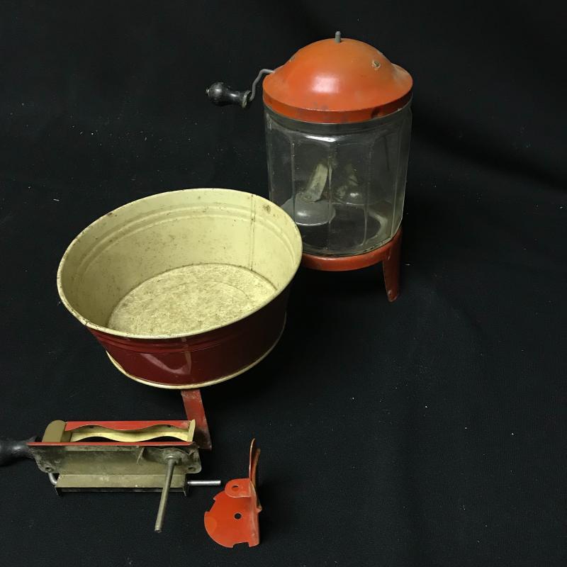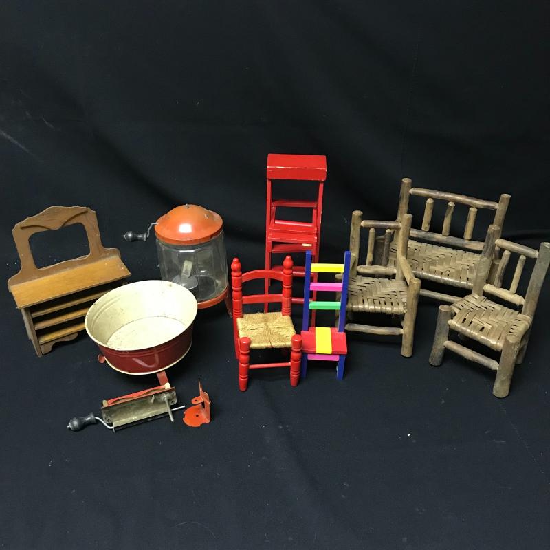 LOT 200- Vintage Doll Furniture includes Toy Wolverine Wash Basin, and More