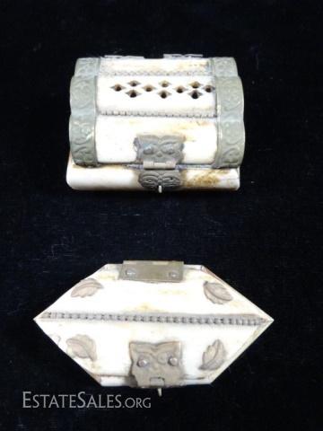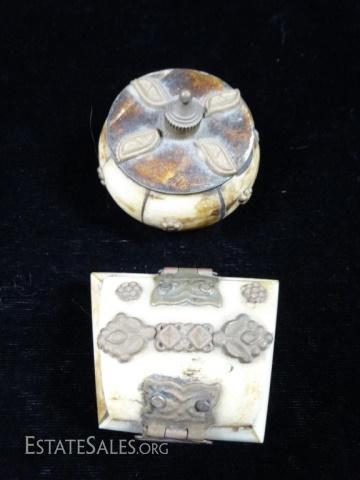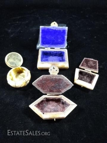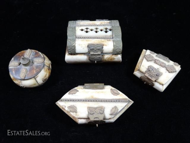 LOT 200: 4 SMALL CAMEL BONE BOXES, APPROX 2" X 2"