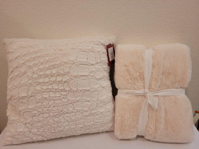 Lot 200: New Charter Club Decorative Pillow & Throw Blanket (Off-white)