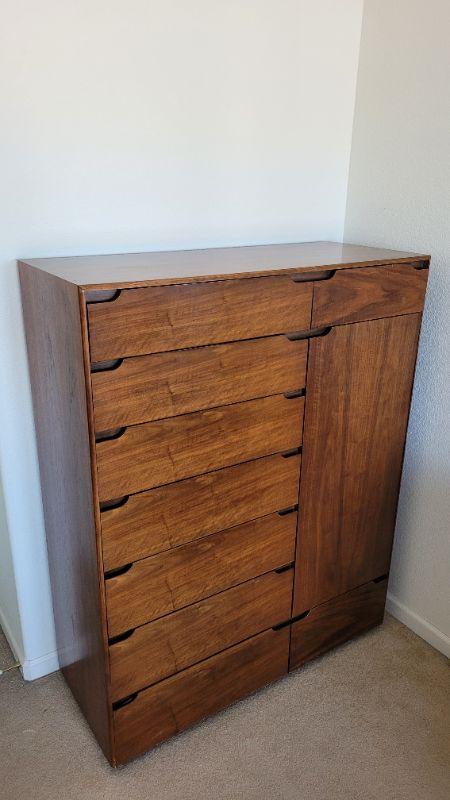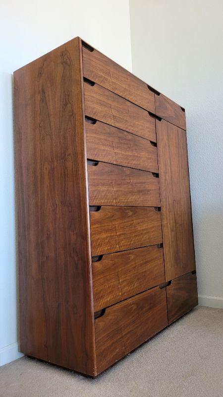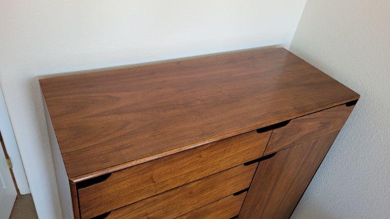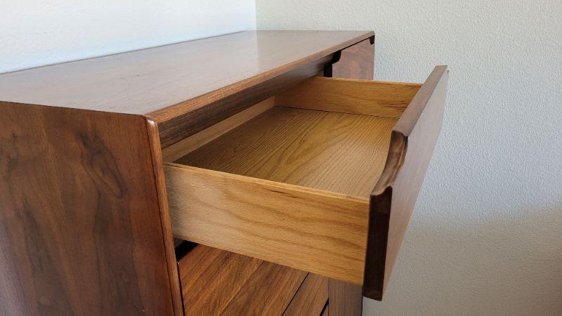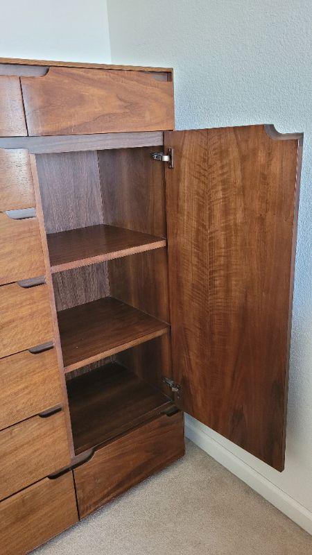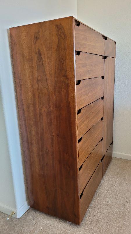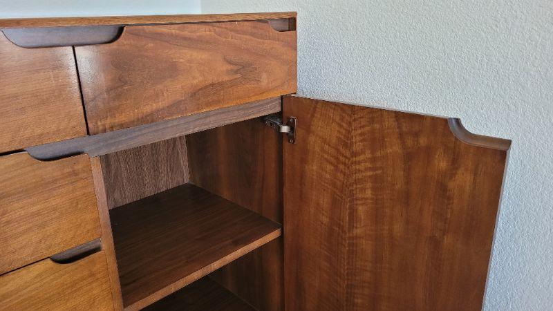 Lot 200: Vintage LANE Mid Century Modern Walnut Dresser w/ Storage