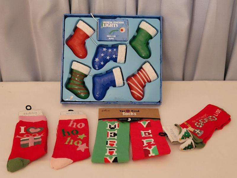 Lot 200: NEW Christmas Stocking Lights and New Socks