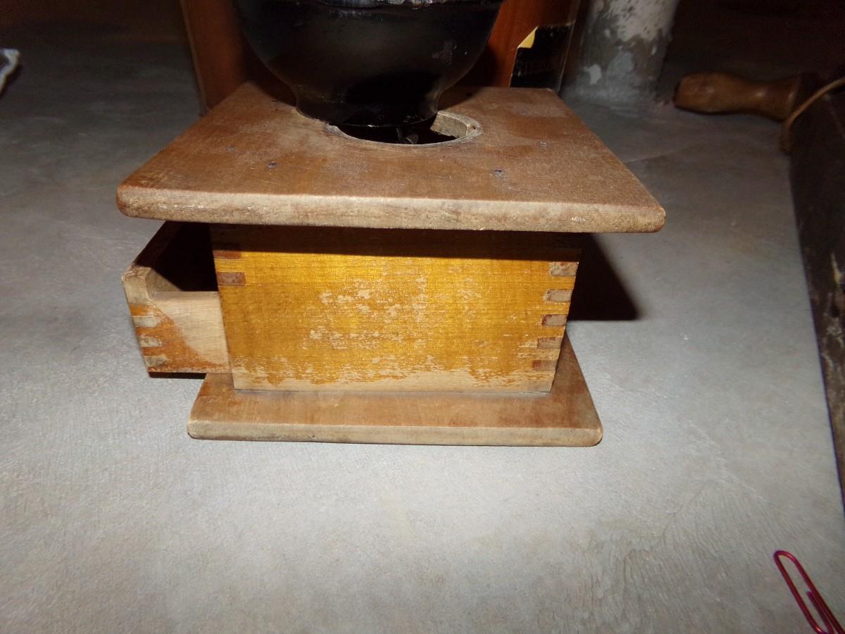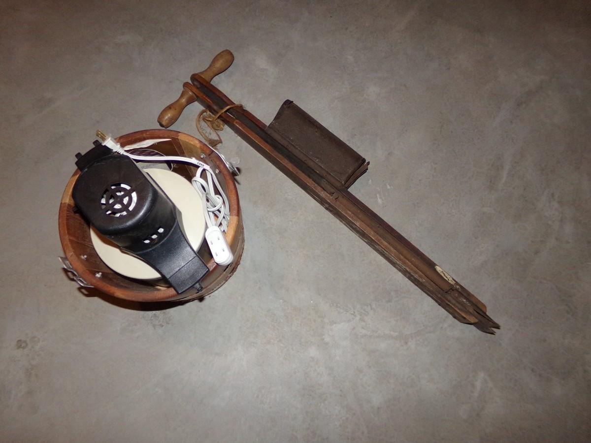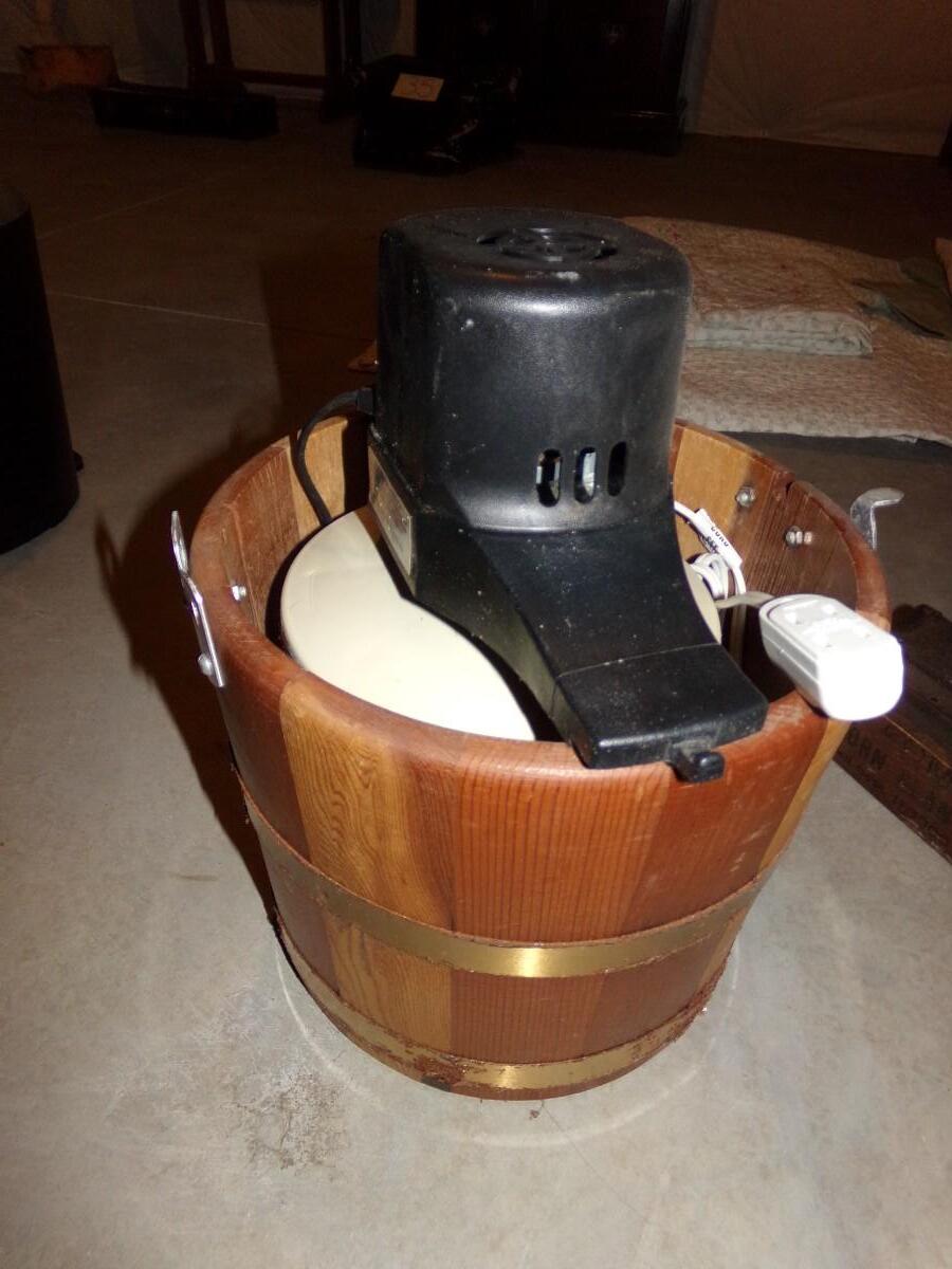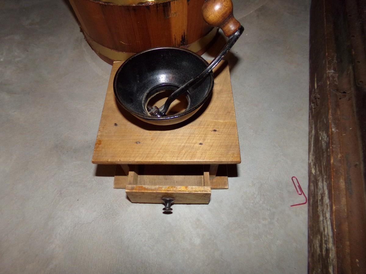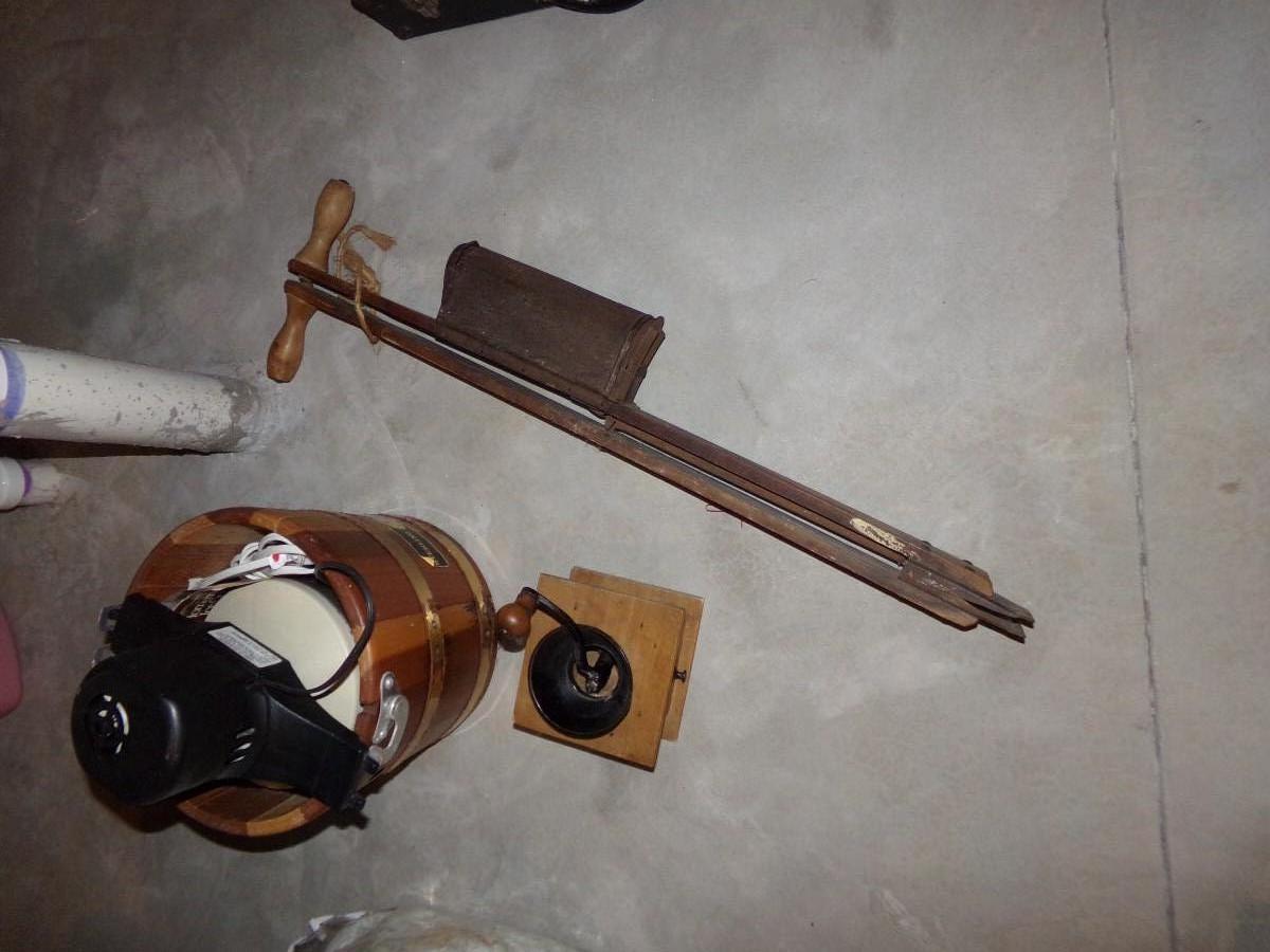 VINTAGE STERLING ELECTRIC ICE CREAM MAKER, ANTIQUE, THE AOME HAND CORN PLANTER, AND WOODEN COFFEE GRINDER IN FAIR CONDITION