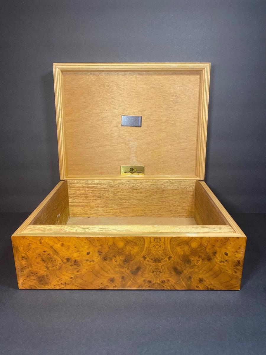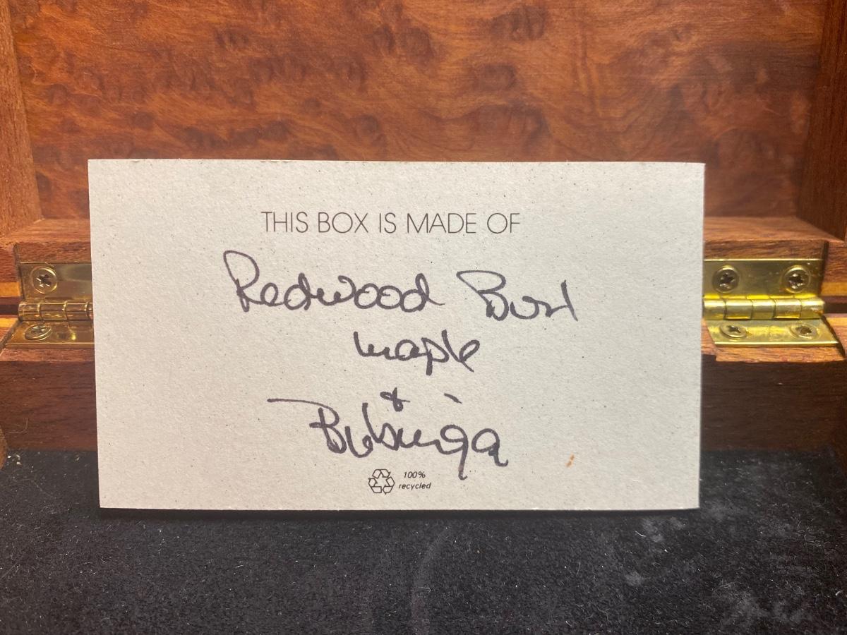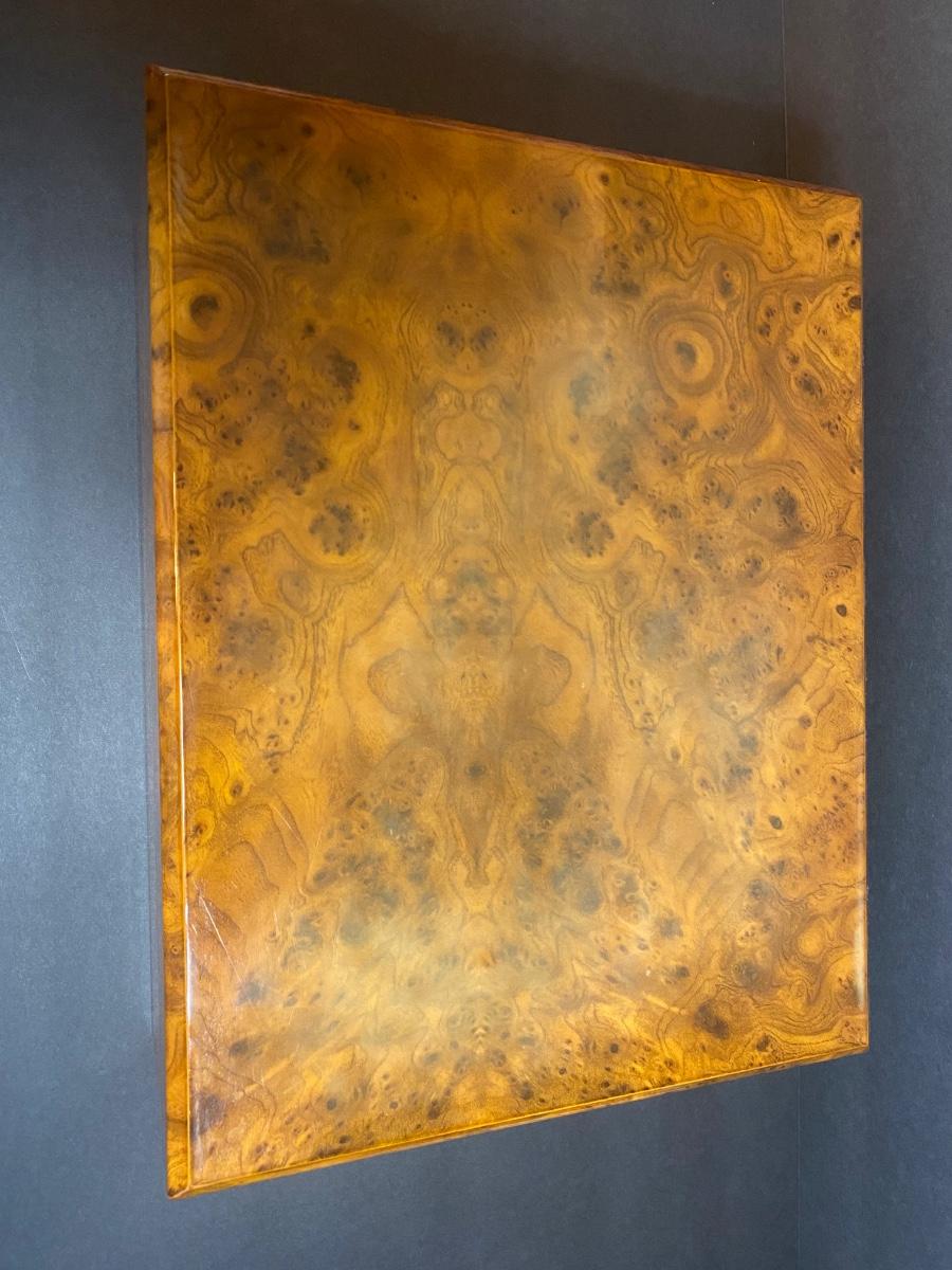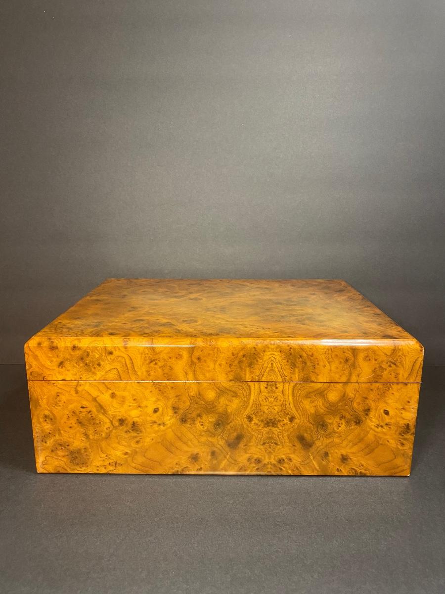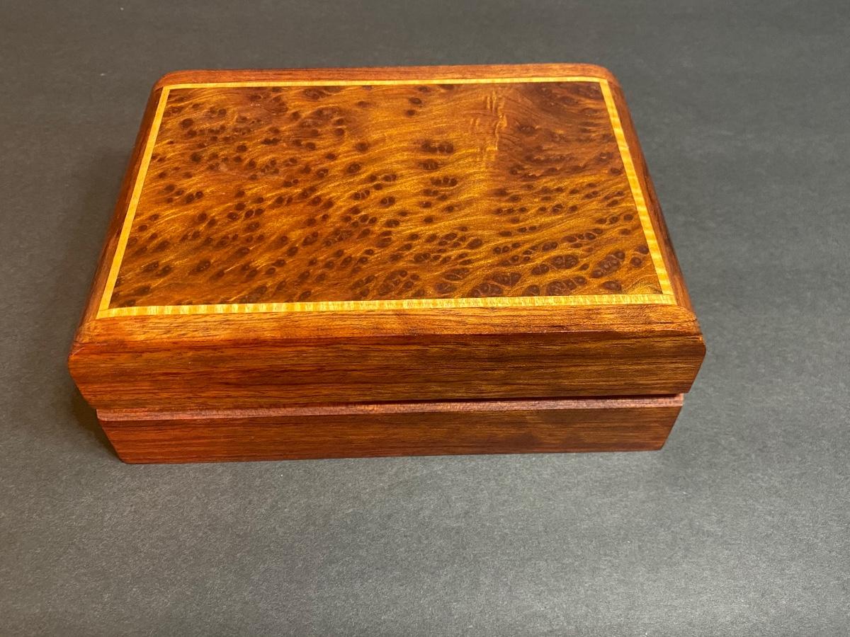 Handmade exotic hardwood art box by David and Kim Okrant, large wood box most likely a vintage humidor without the gage or can be used as a gentlemen's box, and a music box. Please see all pictures as they are the best representation of the items. The pictures show condition, measurements if taken, and what is included in the lot. Due to the large amount that we photograph and the time frame, we are not always able to take measurements. All items unless noted, are pre-owned and have been used. If you purchased furniture, you must bring help. We do not allow one person to carry large furniture out on their own. Bring help, tools and a truck for the safety of our client’s homes, and your personal safety. Company policy. Thank you.
