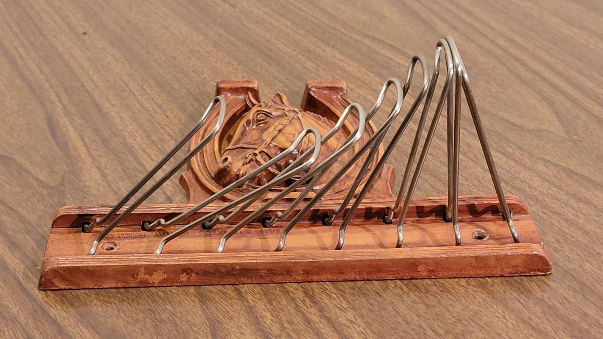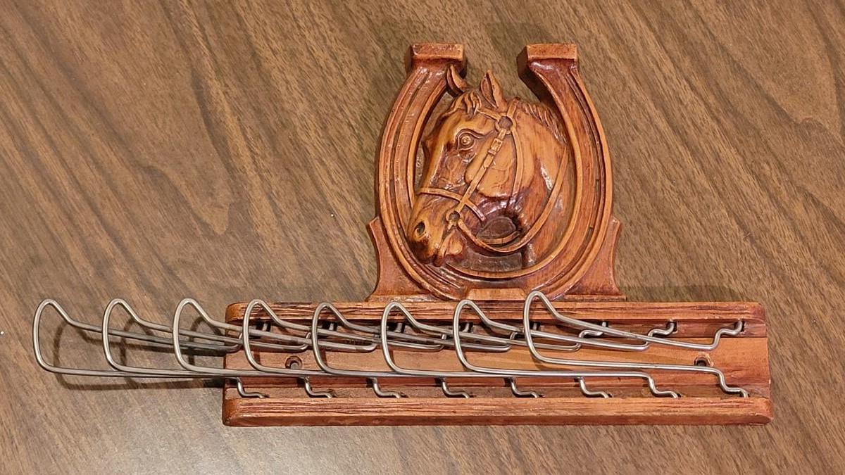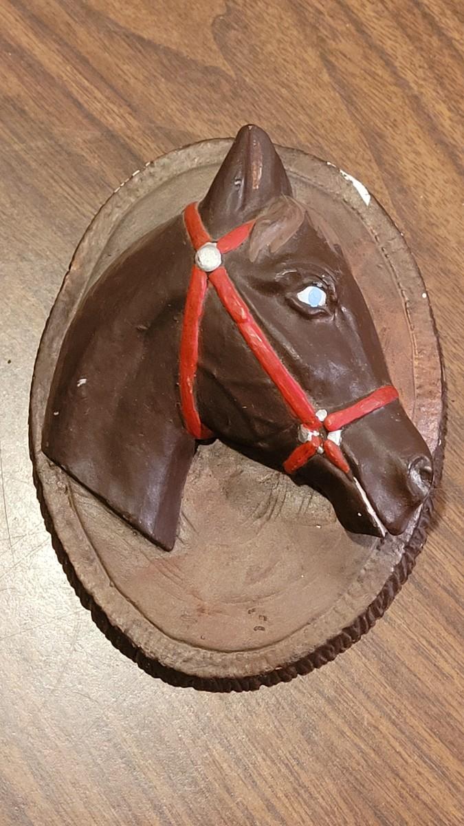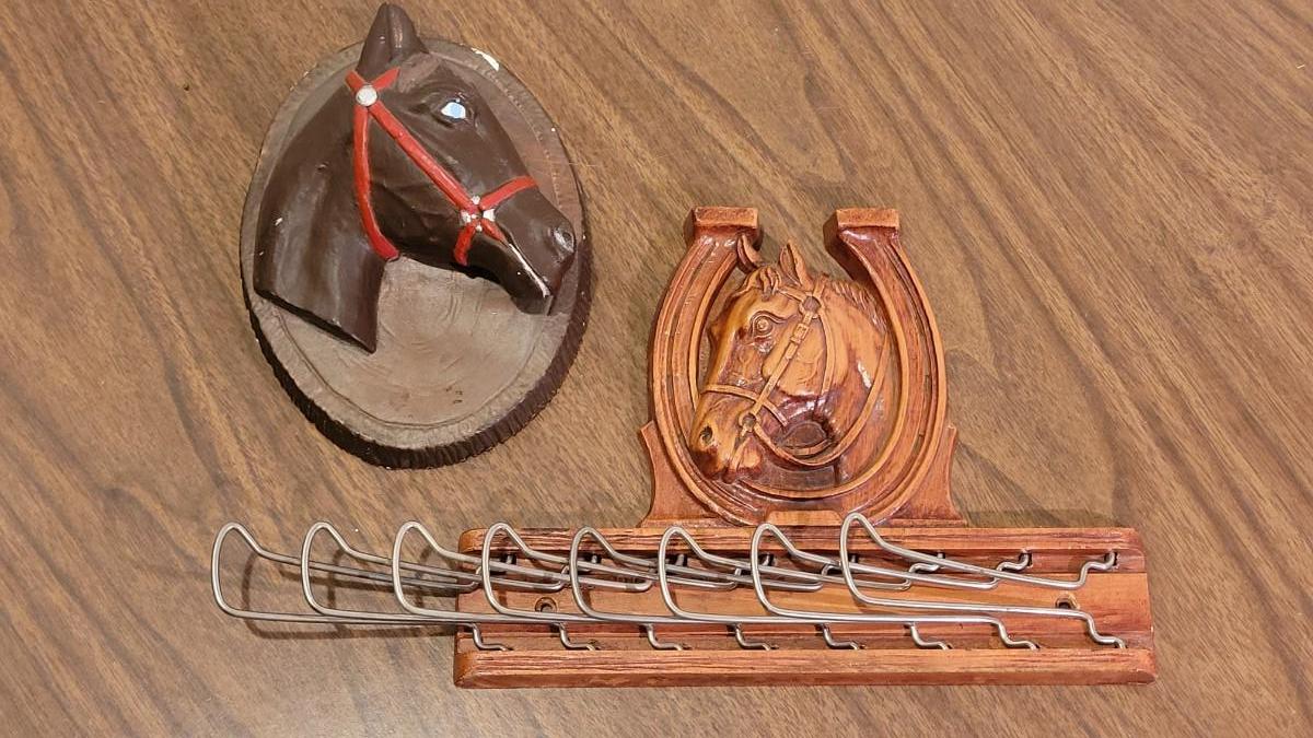 Lot 200: Vintage Chalkware Horse Head and 1955 Horse & Horseshoe Belt/Tie Holder