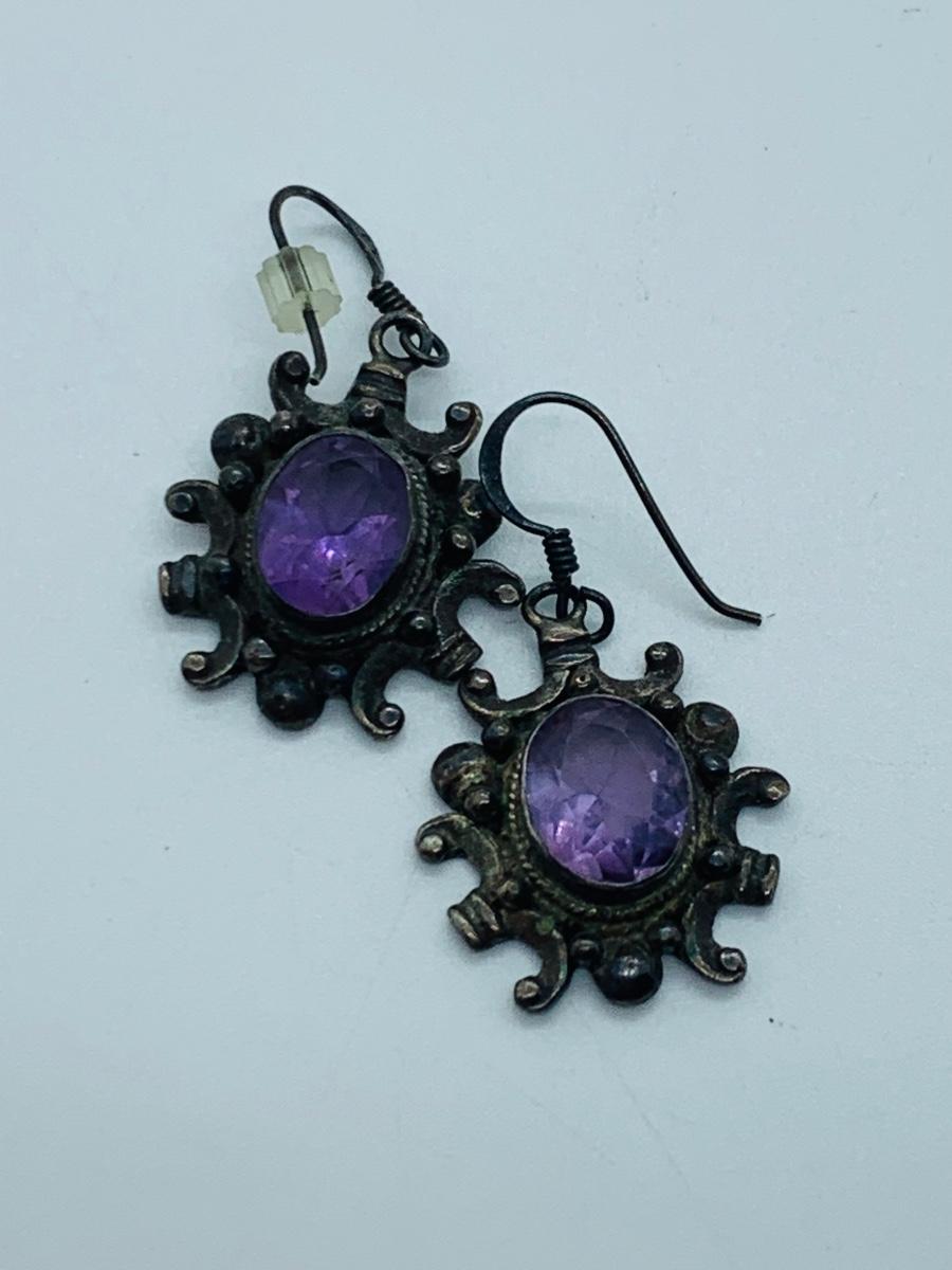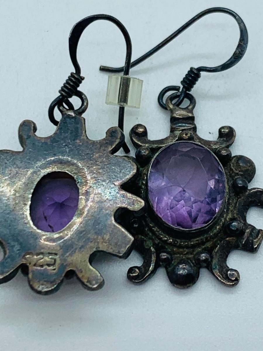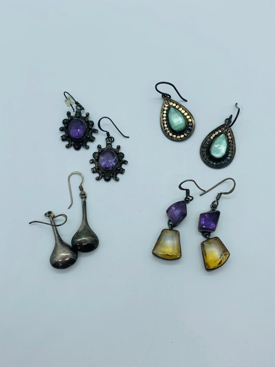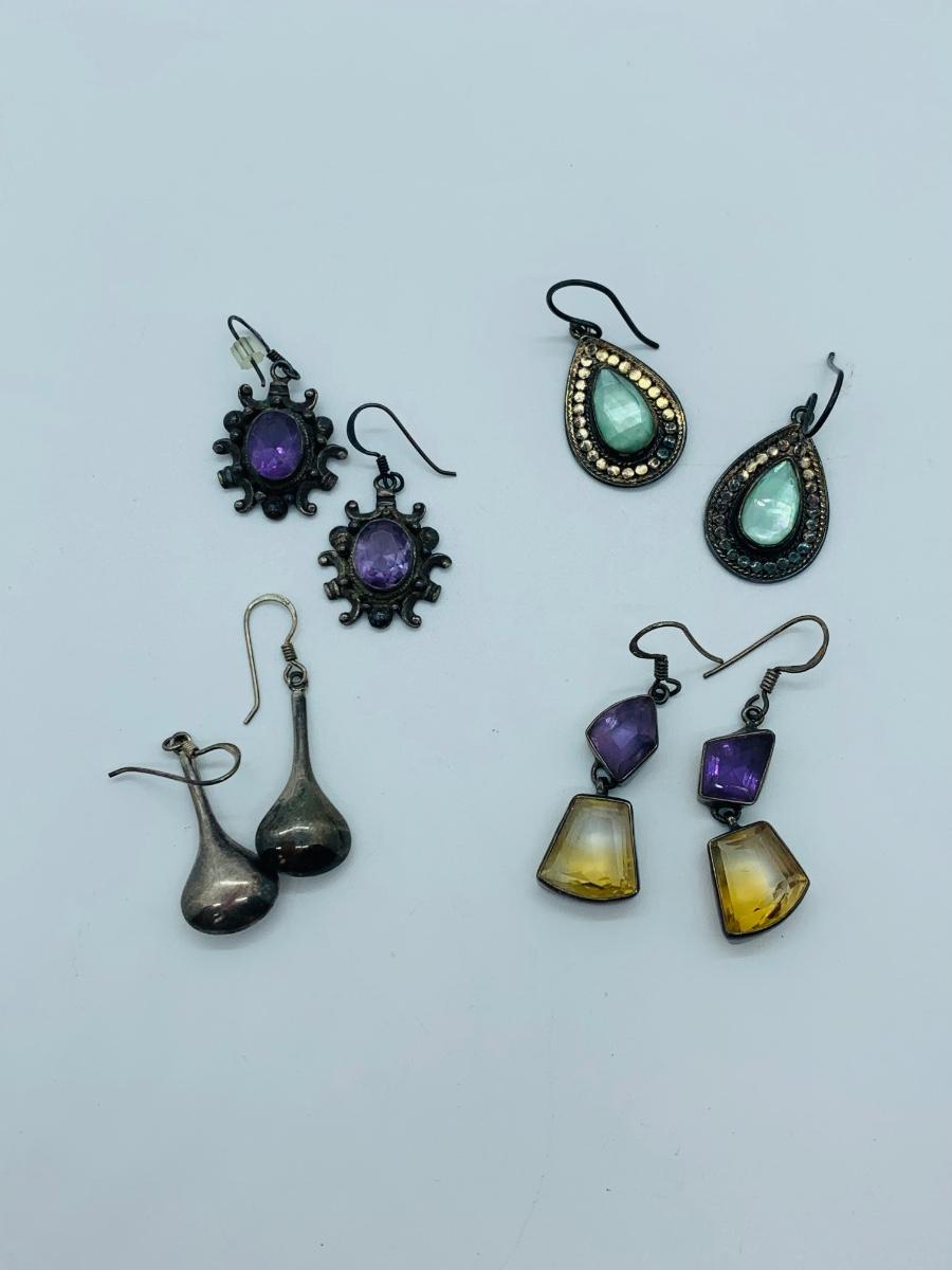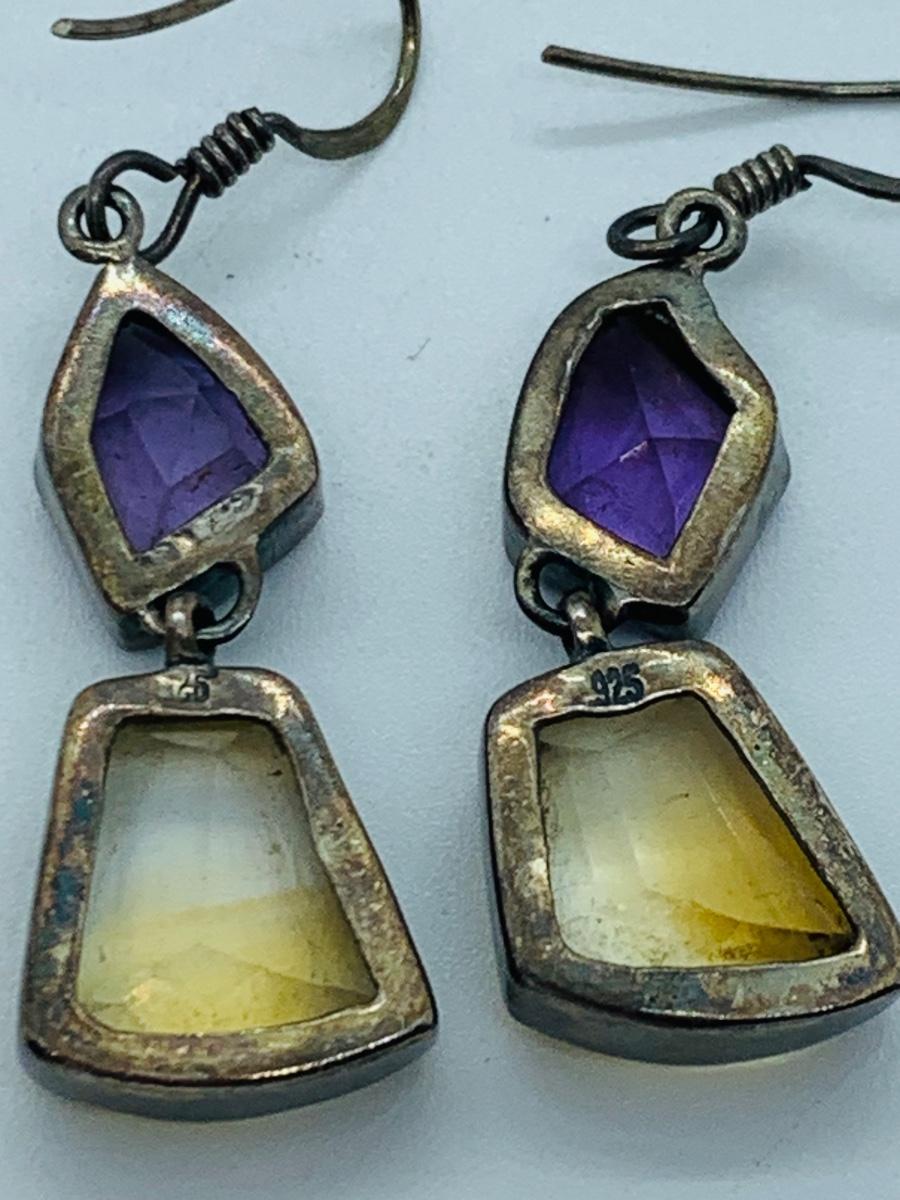 Lot 200J: Sterling Silver & Faux Gemstone Earrings