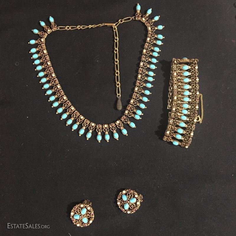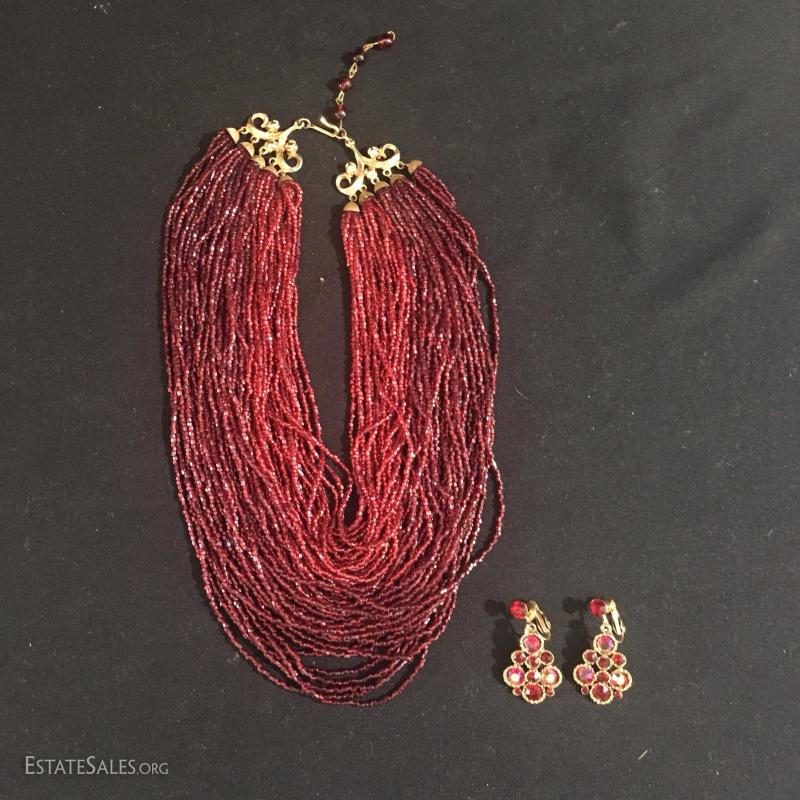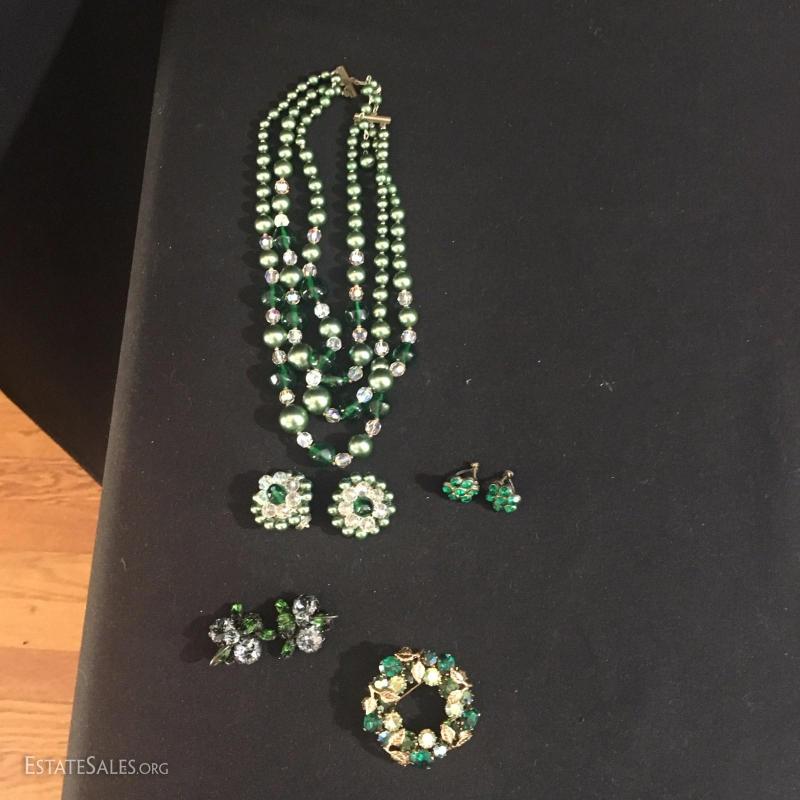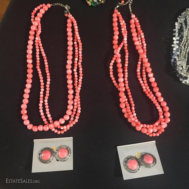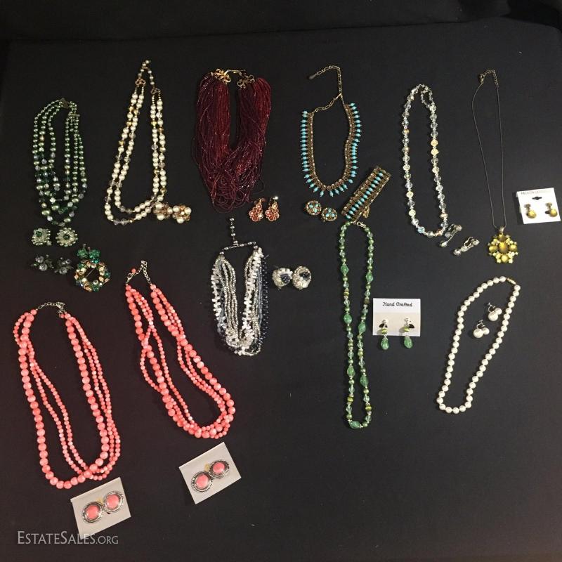 Several necklace and clip earring sets. Some inlcude bracelet as well. See photos.