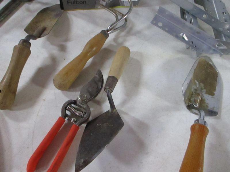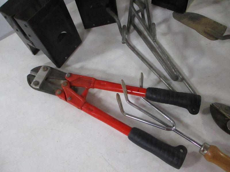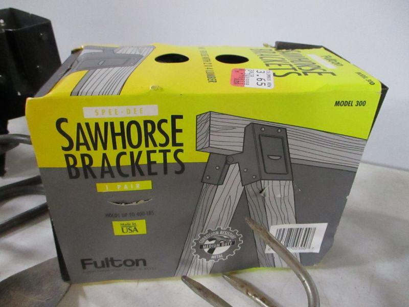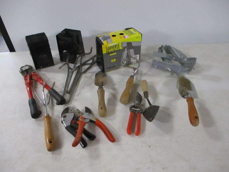 Lot 200 - Box Lot Of Out Door Tools & Sawhorse Brackets