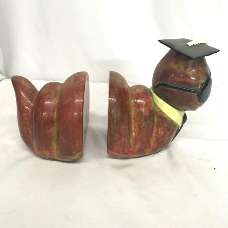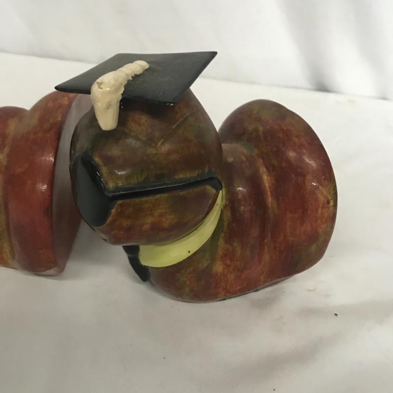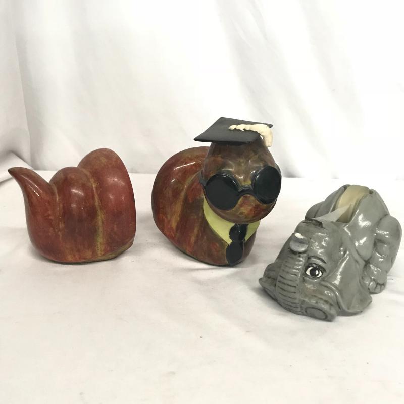 Adorable Duo! Caterpillar bookends with a gorgeous glaze measures 10” x 6.5” with both pieces together and a unique elephant tape dispenser with a personalized note on the bottom. Shipping available.