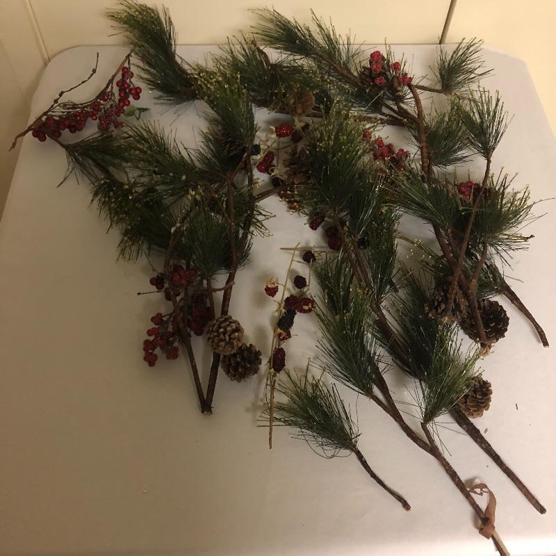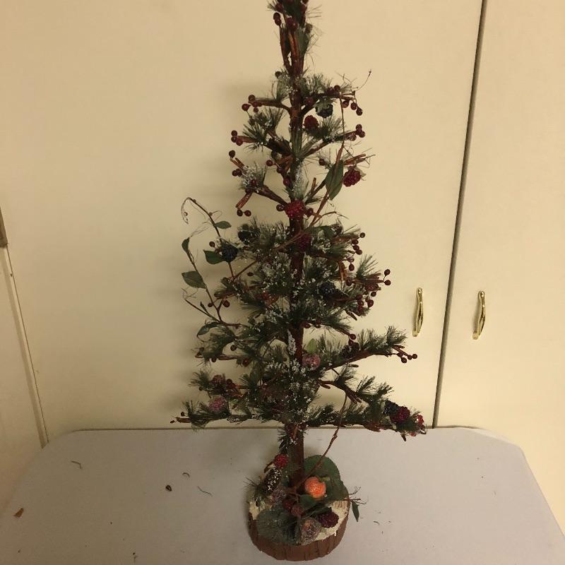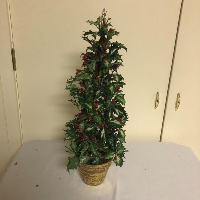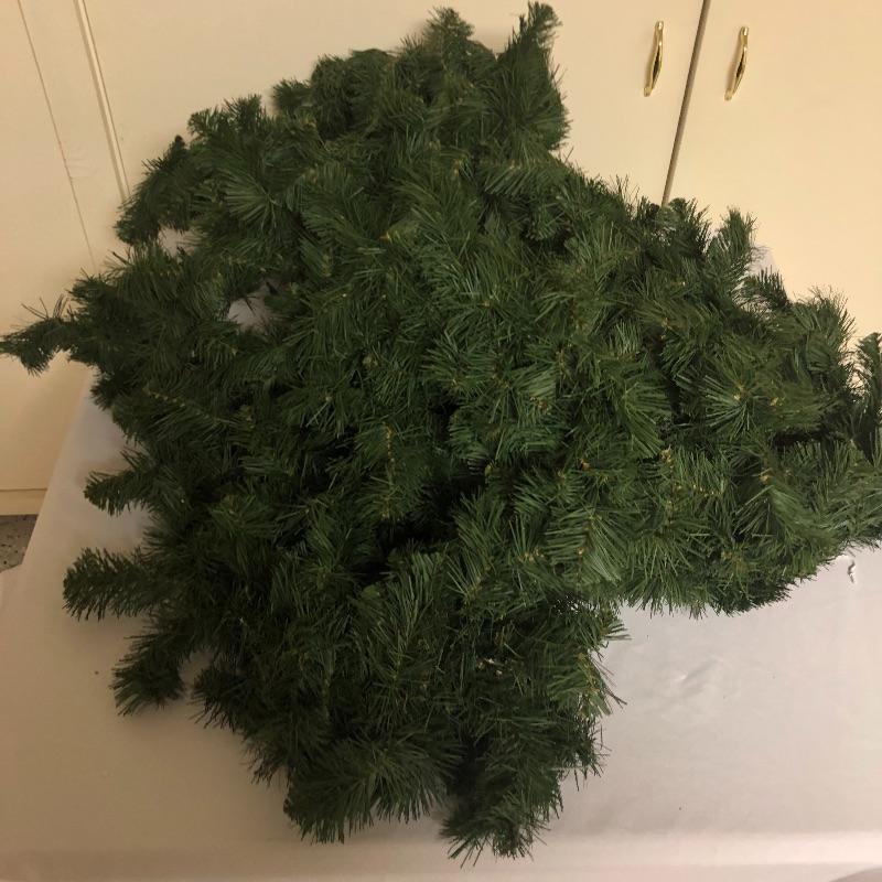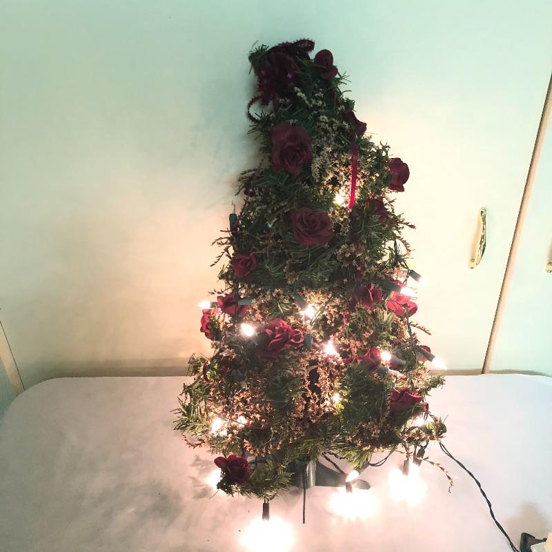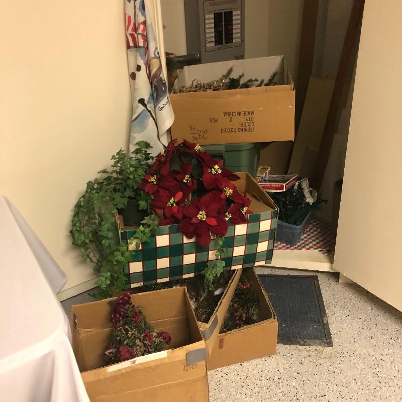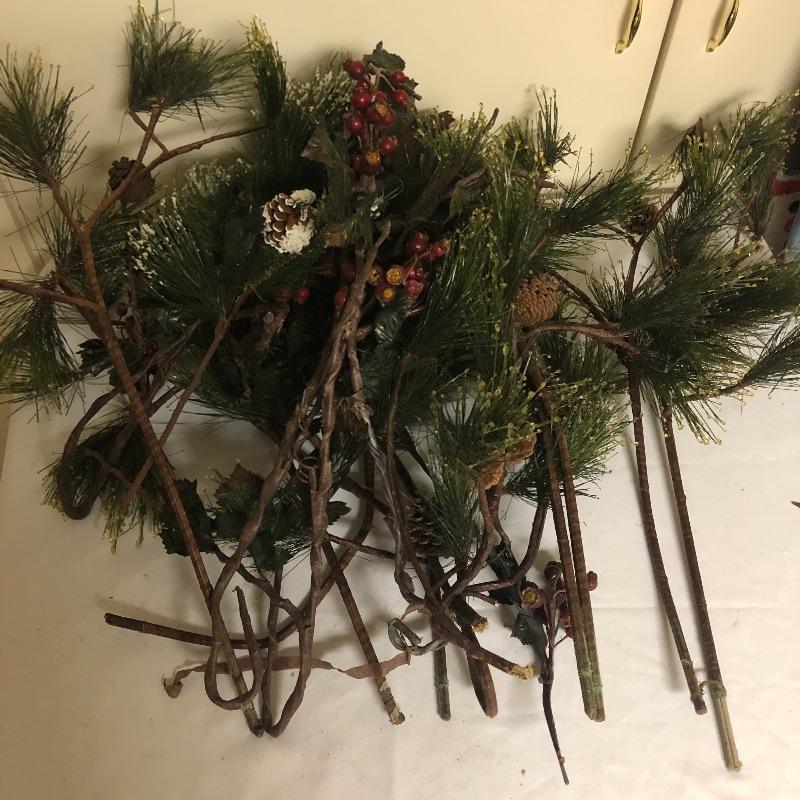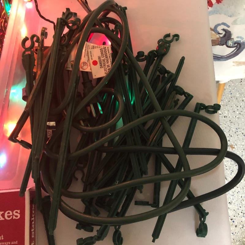 Be ready for Christmas with this plethora of Decorations that includes four strings of multi colored lights that worked when tested, two wreaths, faux poinsettias, snow depth gauge, metal reindeer, flag, extension cord, three faux trees, garland and more. Largest wreath measures 23”D.