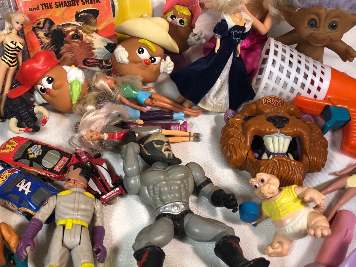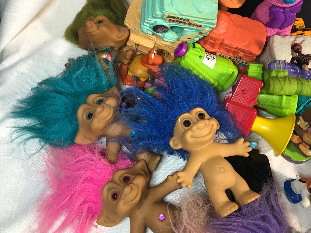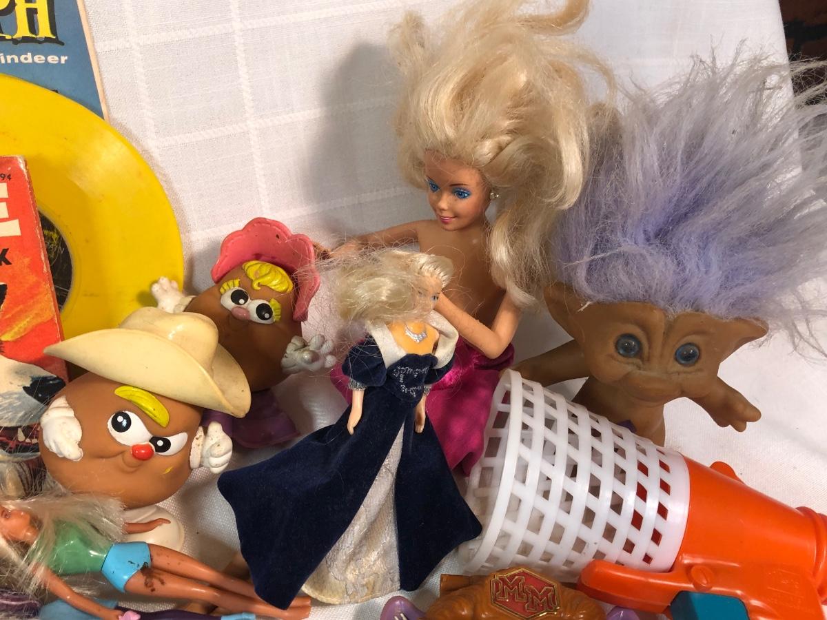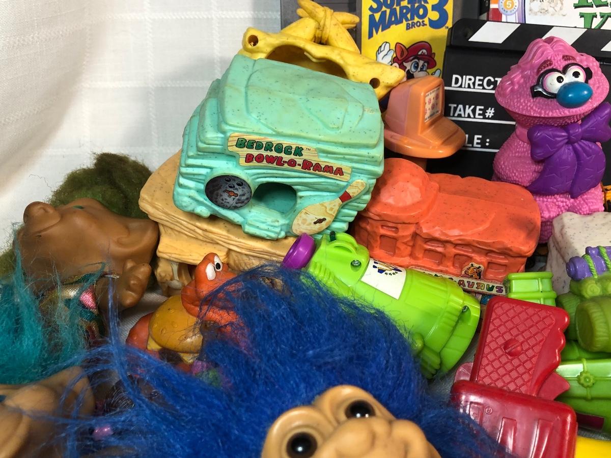 LOT 200: Huge Vintage Toy Collection - NES Super Mario 3, Popeye Christmas Stories Record, McDonalds Toys, Troll Dolls & More