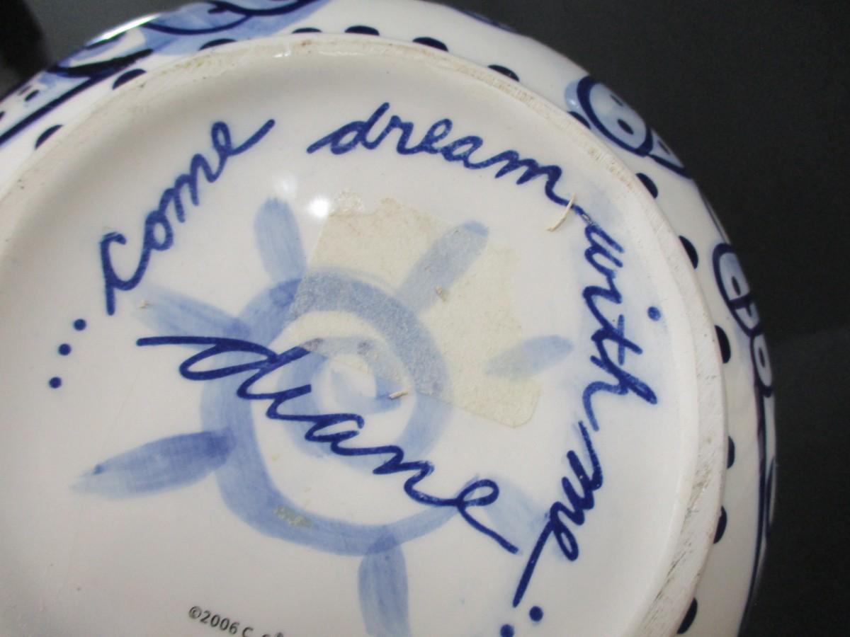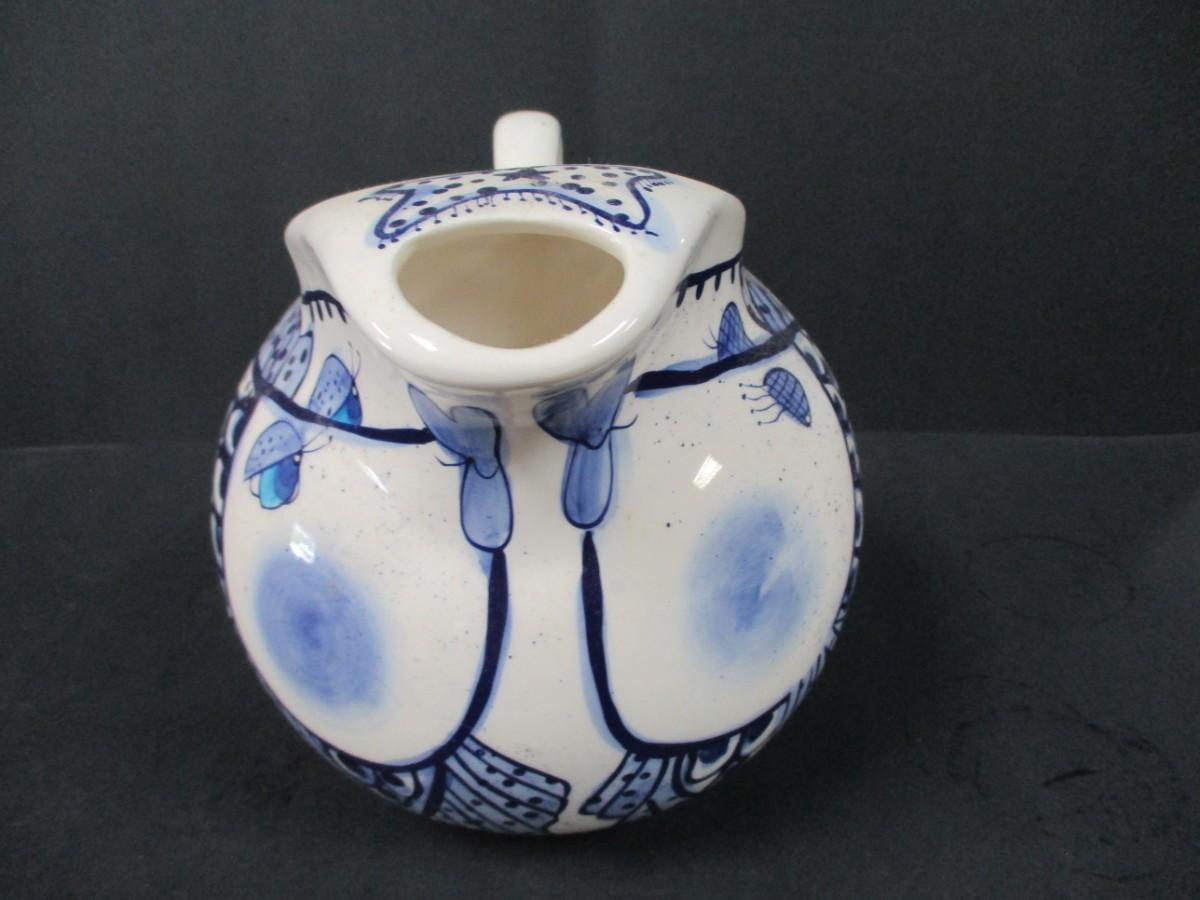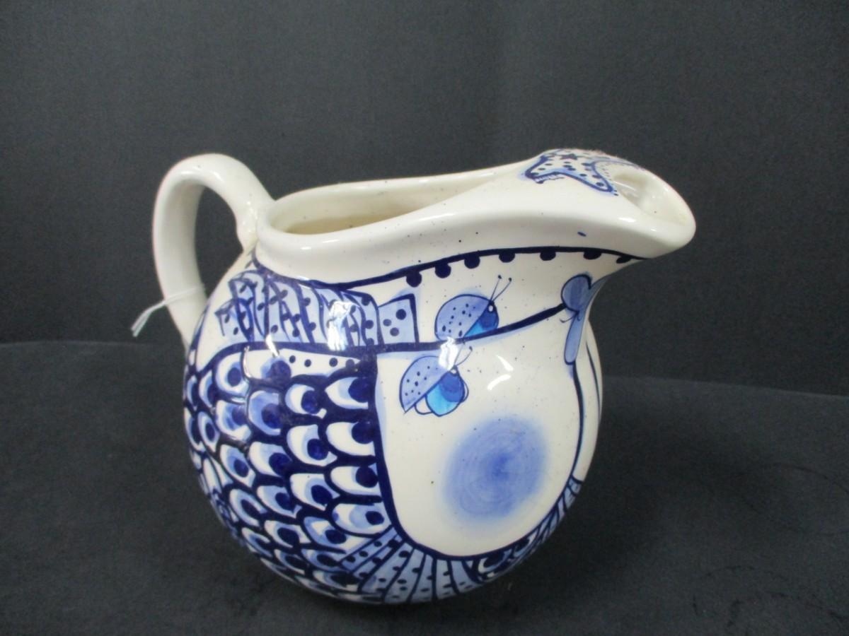 Lot 200 - Come Dream With Me by Diane Hand-Painted Art Pitcher Blue White Kissing Fish
