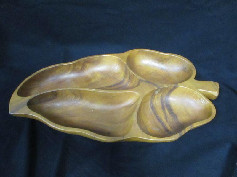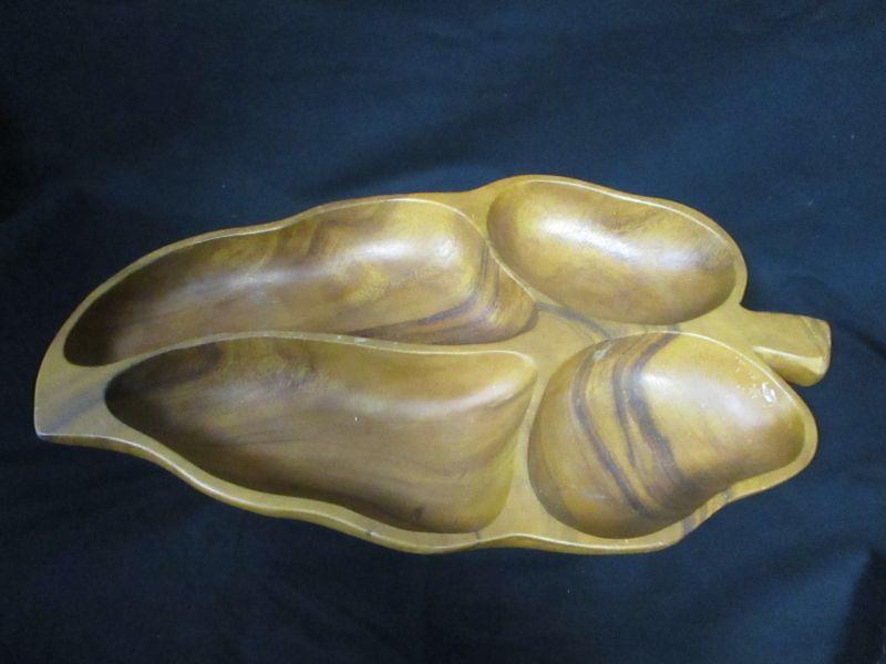 Lot 200 - Dolphin Genuine Monkey Pod Wood Four Compartment Bowl Leaf