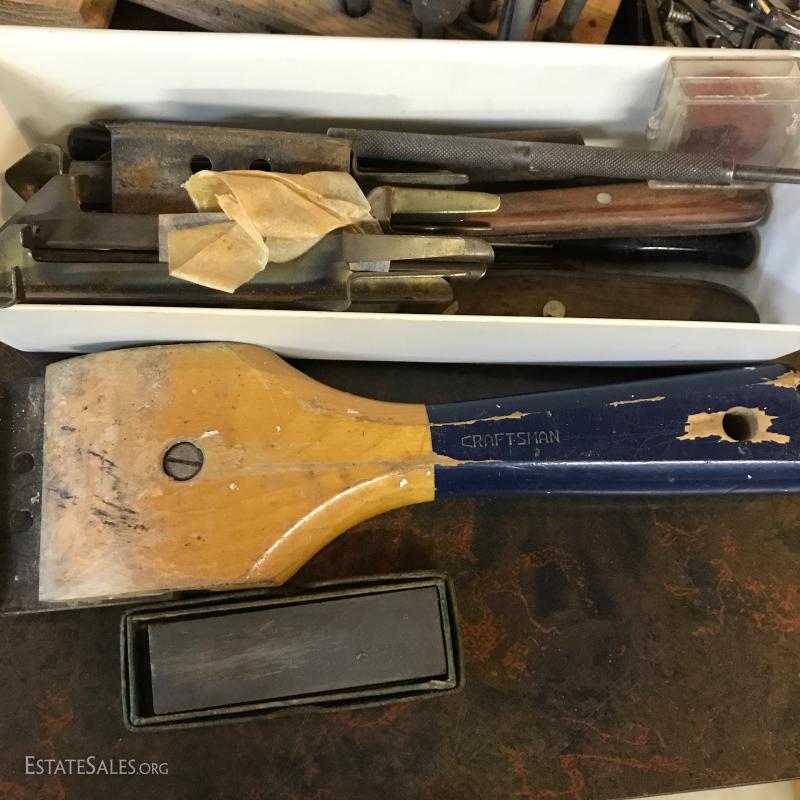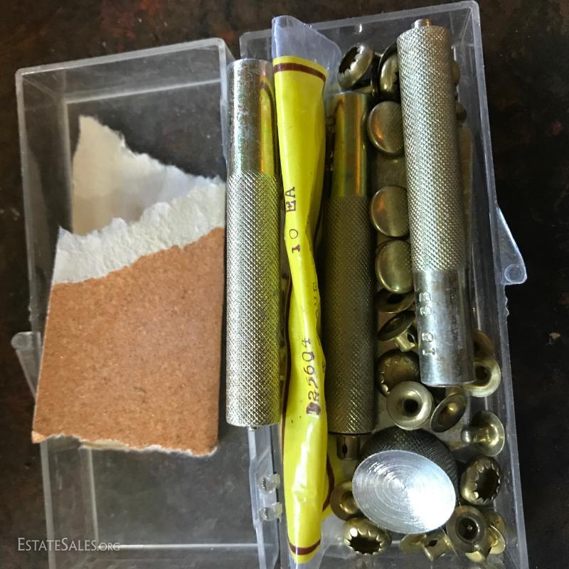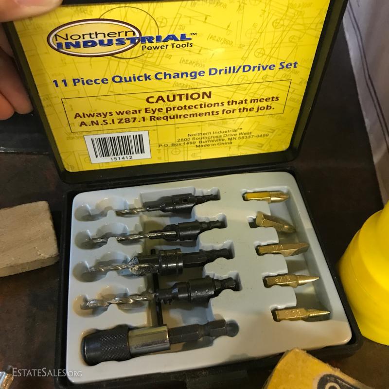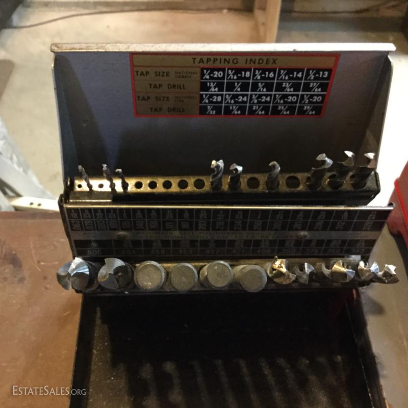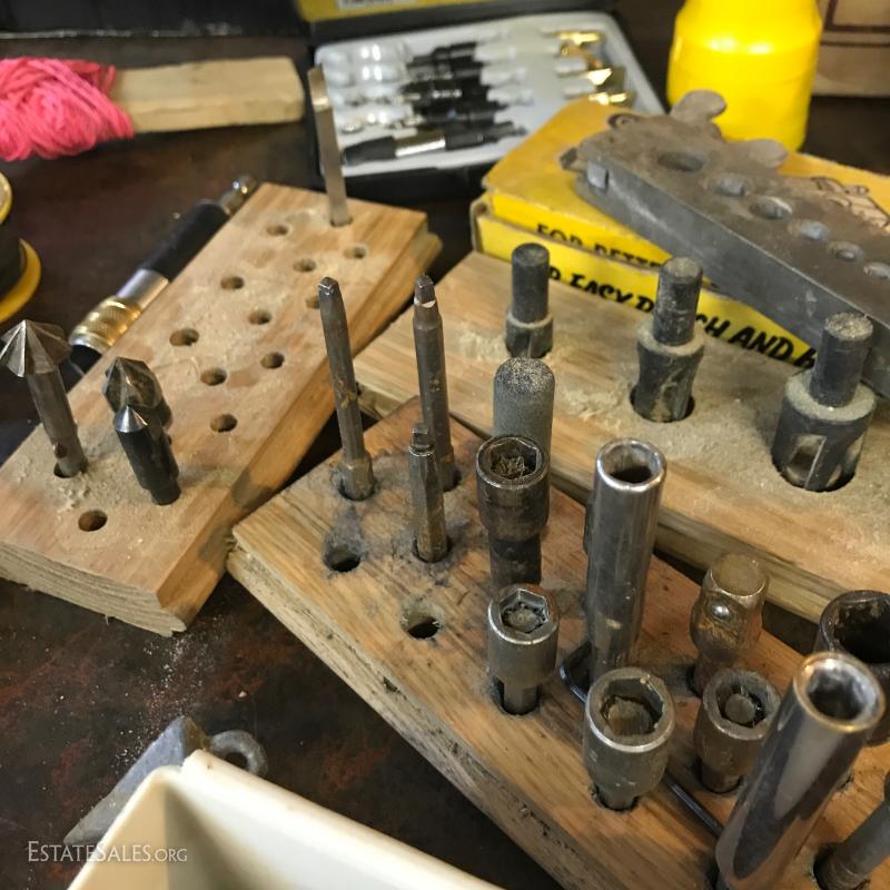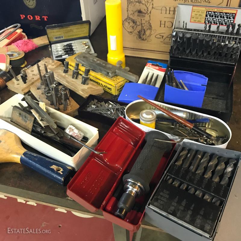 Assorted drill bits, several plumb bobs and horseshoe nails. More misc items. See photos.
