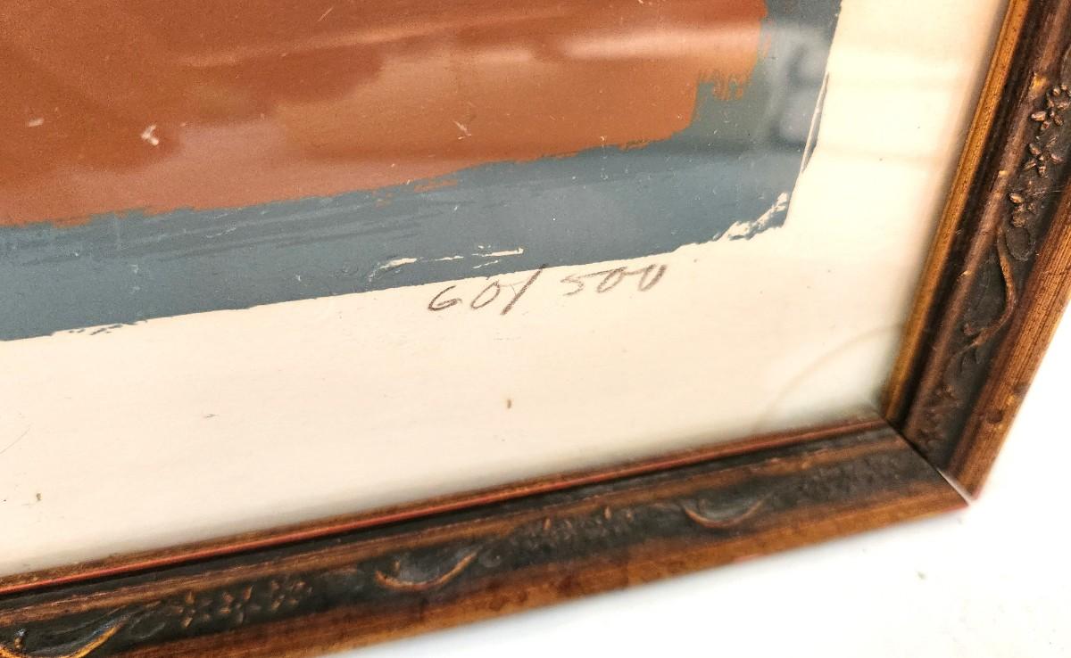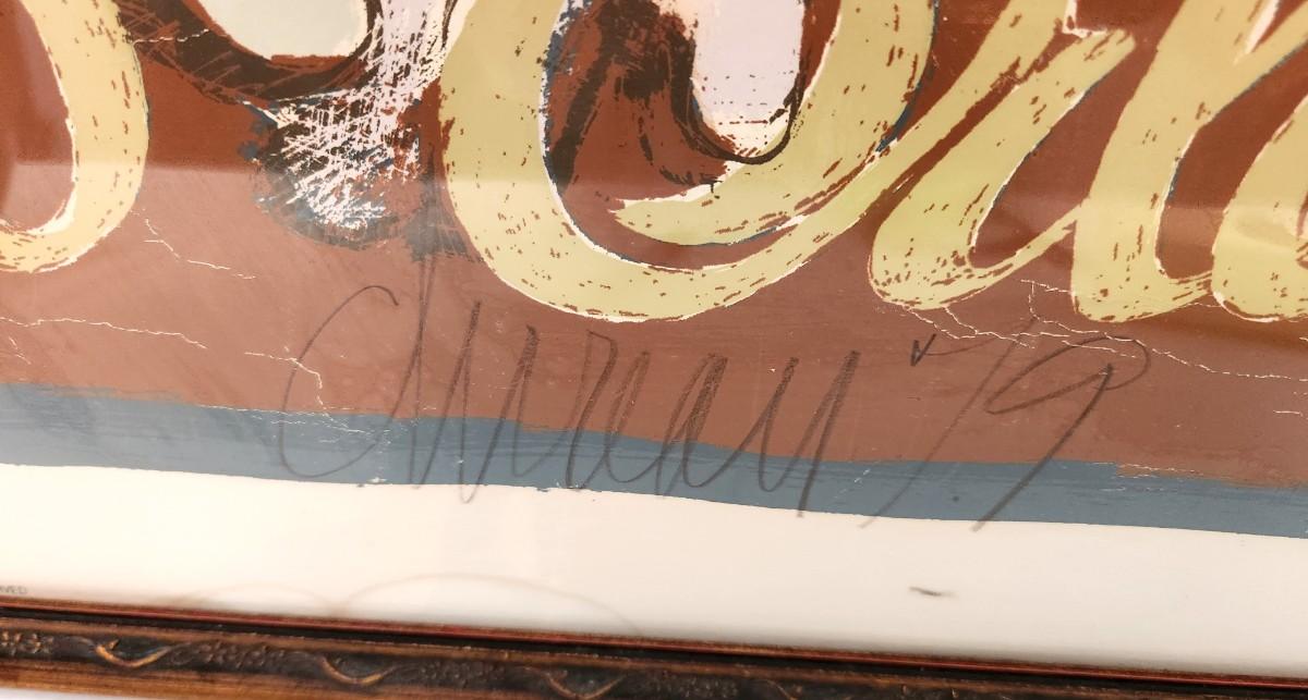 Iconic George Dureau pencil signed/numbered framed print/poster. #60/500, pencil signed Durreau '79. A bit of water damage/staining at bottom (as shown) - does not affect the image. 38.5" tall, 25.5" across.