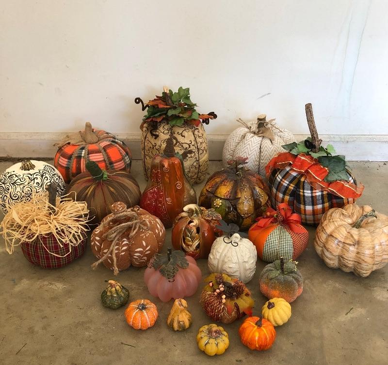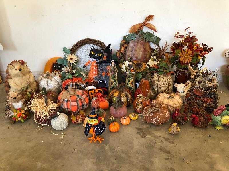 What perfect timing! This large assortment of fall decor can go straight out to decorate your home. We aren’t joking,..there are gourds galore here as well as Halloween, Thanksgiving and More. See images for everything that is included. Smallest to largest gourds measure 1” x 2” - 7” x 10”.