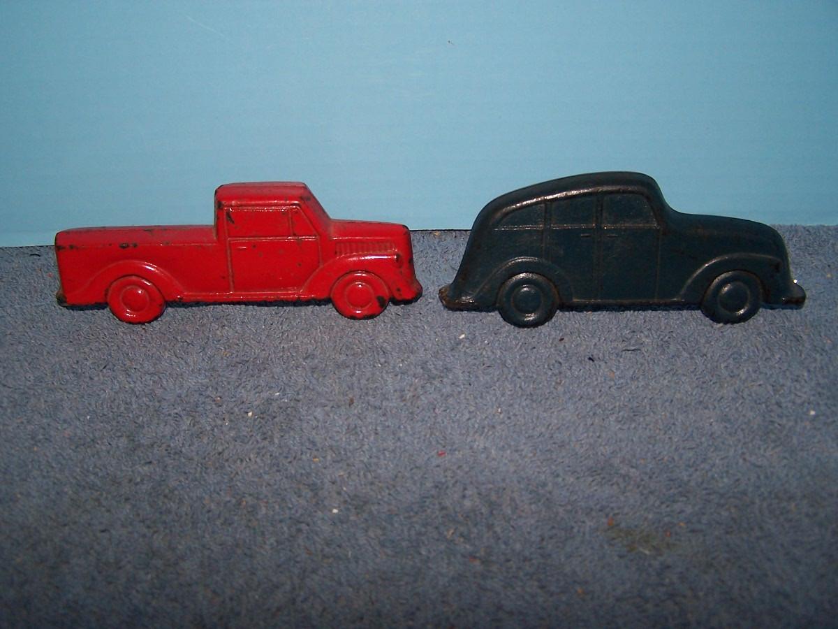 THESE ARE WONDERFUL VINTAGE HARD RUBBER VEHICLES! UNMARKED.. RED IS 5 1/4'' LONG.. ALL TOYS HAVE BEEN PLAYED WITH..