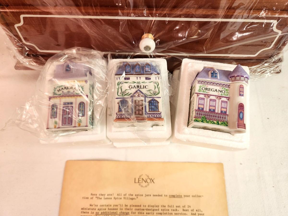 WOW! I have never found one of these in the "wild" before. New in box! Complete! Lenox Spice Village - 1989 - 24 houses, each in their own box - rack has its own box. First photo is a stock photo to show you what the set looks like complete - we didn't want to remove all the houses from their boxes. Has paperwork. This will be LOCAL PICKUP ONLY - don't ask me to ship it. These routinely sell for over $1,000 on ebay. Super Scarce!!!!