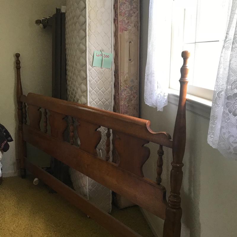 Beautiful all wood king headboard measures 79.5” x53.5”. Two twin metal frames included. Also two twin mattresses if buyer wants them. Local pick up only.