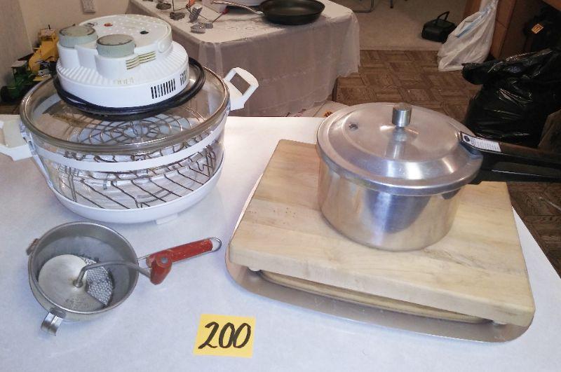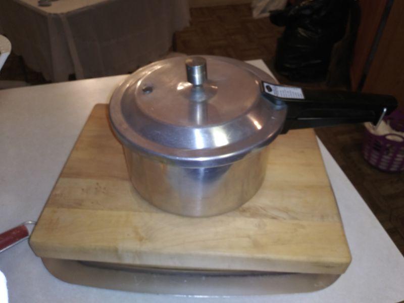 PRESSURE COOKER, 2 WOODEN CUTTING BOARDS AND GRINDER